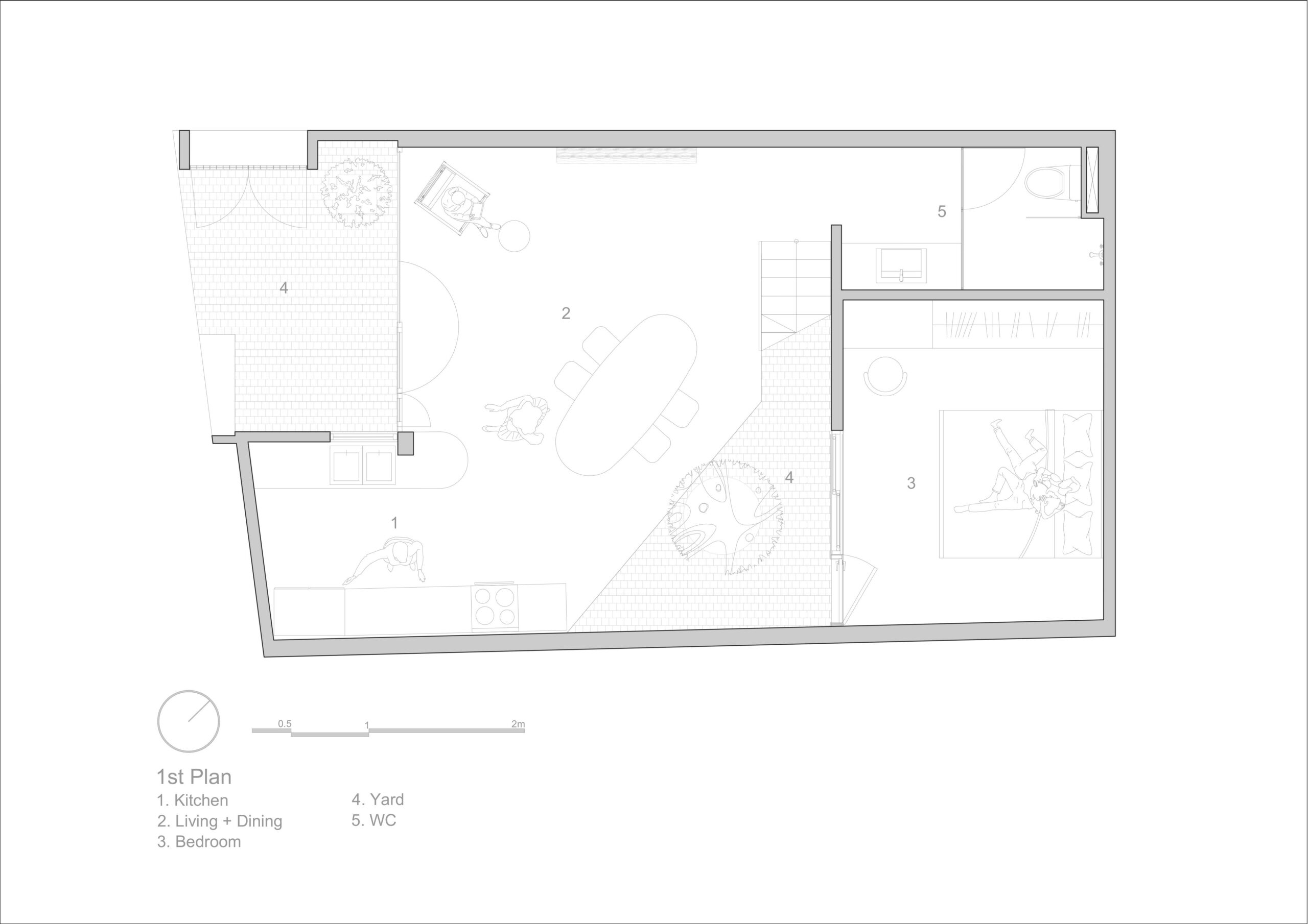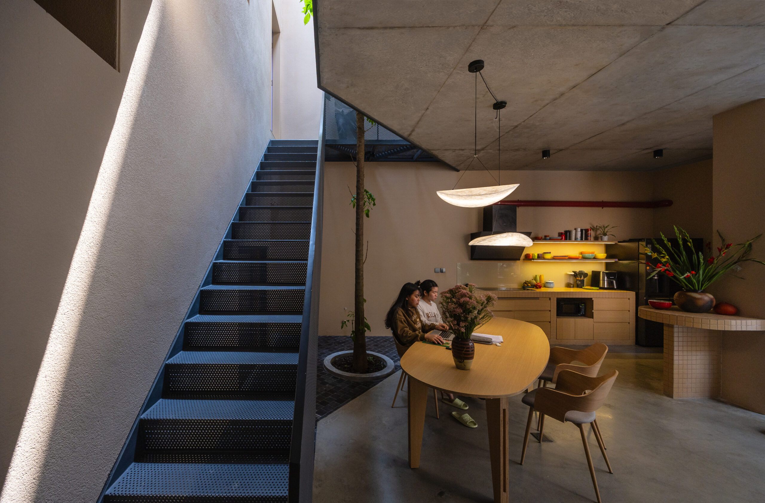 Bên trong ngôi nhà, ánh sáng tự nhiên được dẫn dắt khéo léo để len lỏi vào từng ngóc ngách. Các kiến trúc sư đã tính toán kỹ lưỡng để nắng lướt qua các bề mặt vật liệu, tạo nên những mảng sáng tối sinh động và ấm áp. Sự kết hợp giữa cấu trúc mở và cách điều phối ánh sáng biến ngôi nhà thành một không gian mang tính chiêm nghiệm, nơi mỗi bước chân, mỗi hoạt động thường nhật đều trở nên gần gũi với thiên nhiên.