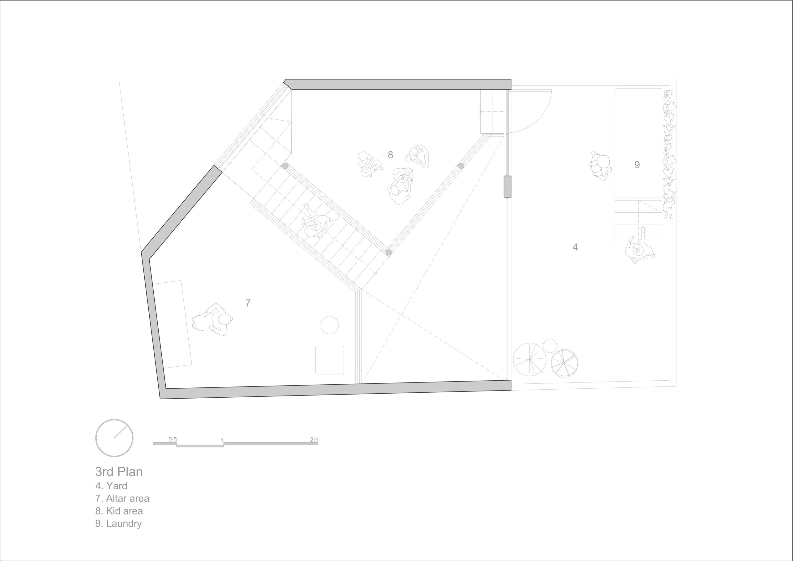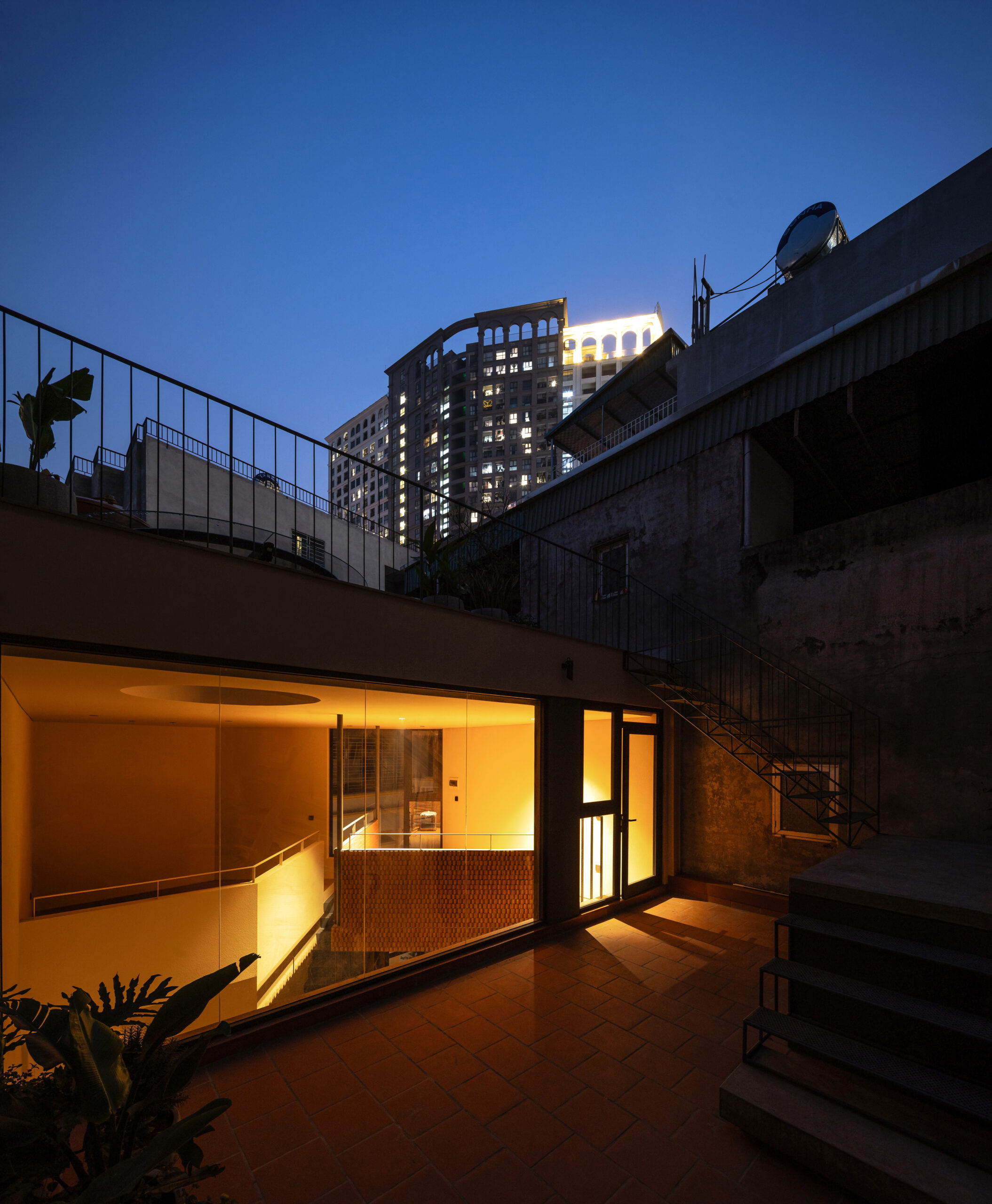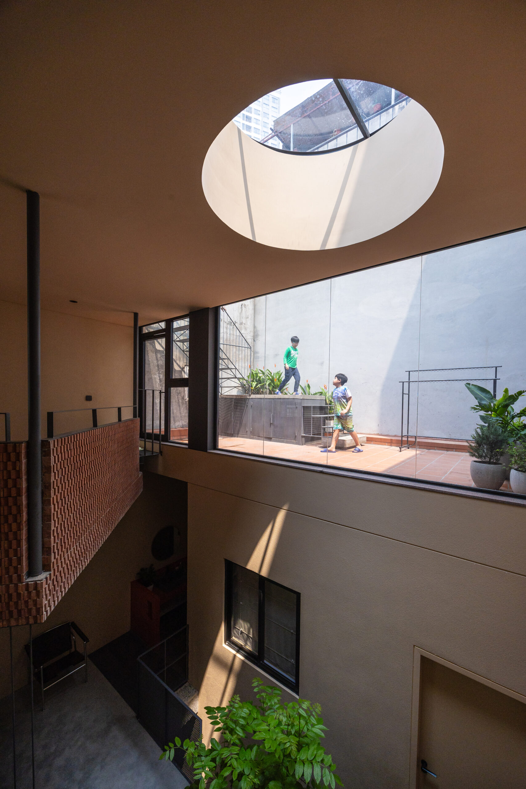 Điểm đặc biệt nhất của công trình chính là việc biến mái nhà thành một khoảng sân thượng rộng rãi. Trong khi các gia đình đô thị thường bỏ trống không gian này, Lĩnh Nam House lại biến nó thành sân chơi an toàn cho trẻ nhỏ và nơi thư giãn lý tưởng cho người lớn. Nhờ tận dụng các bức tường cao của nhà hàng xóm bao quanh, khu vực sân thượng vừa đón trọn nắng gió, vừa đảm bảo được sự riêng tư cần thiết cho những buổi sinh hoạt gia đình.