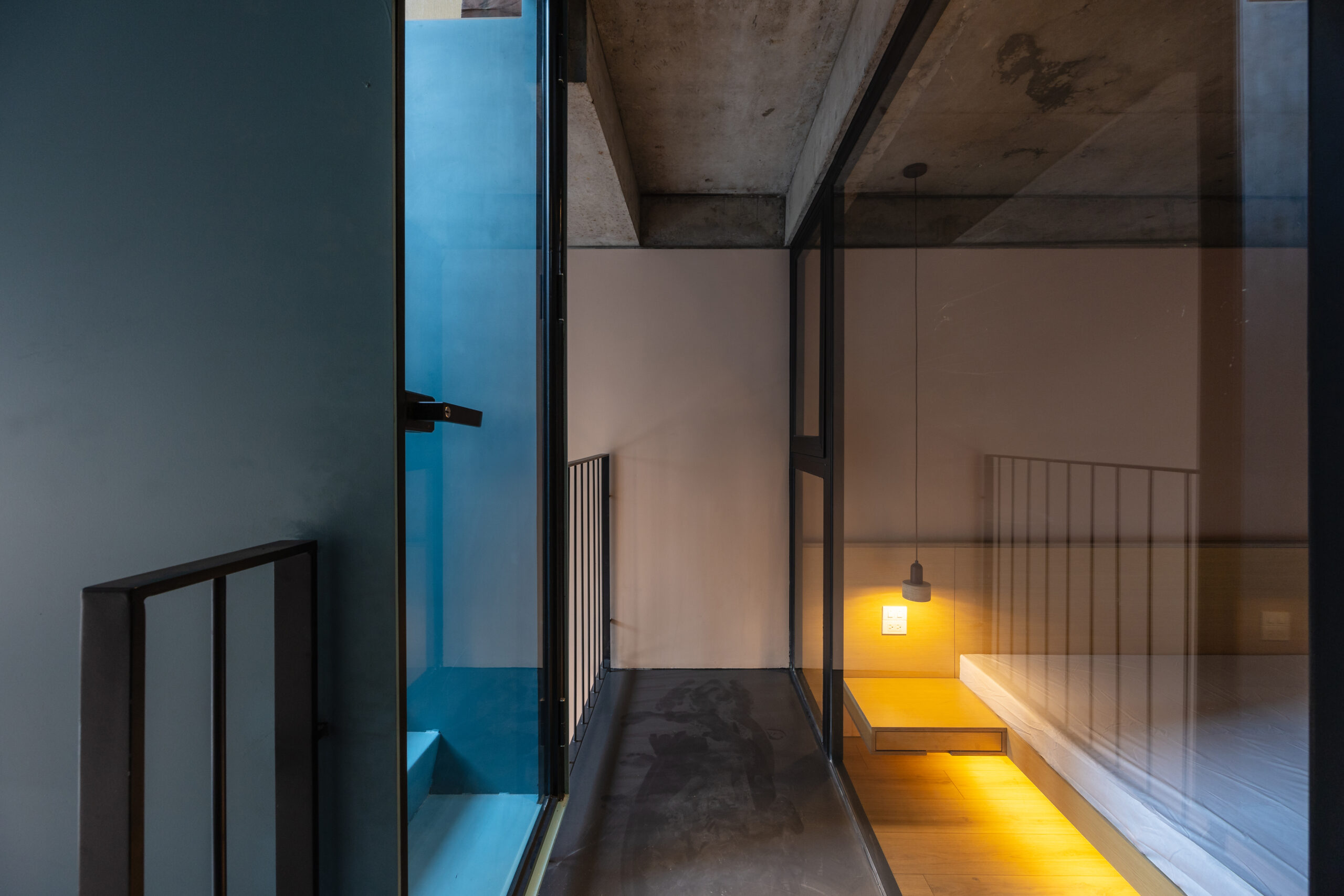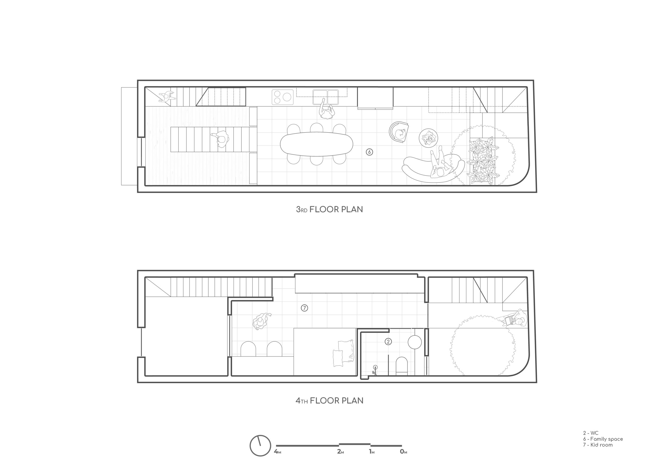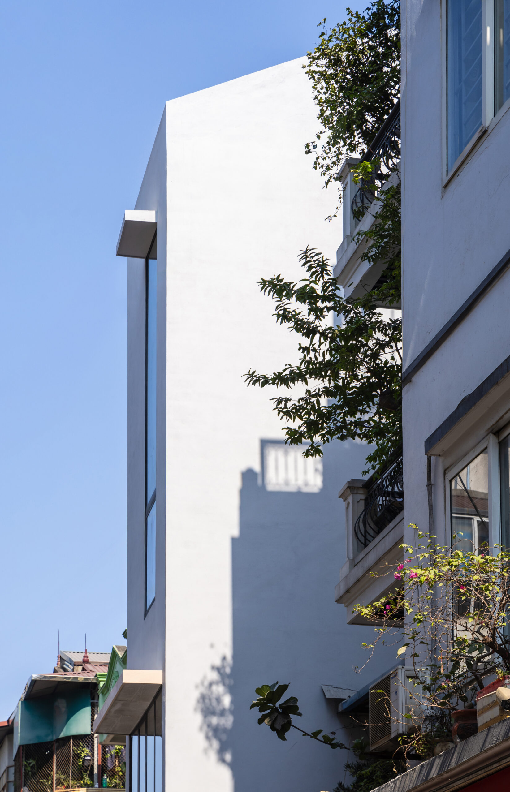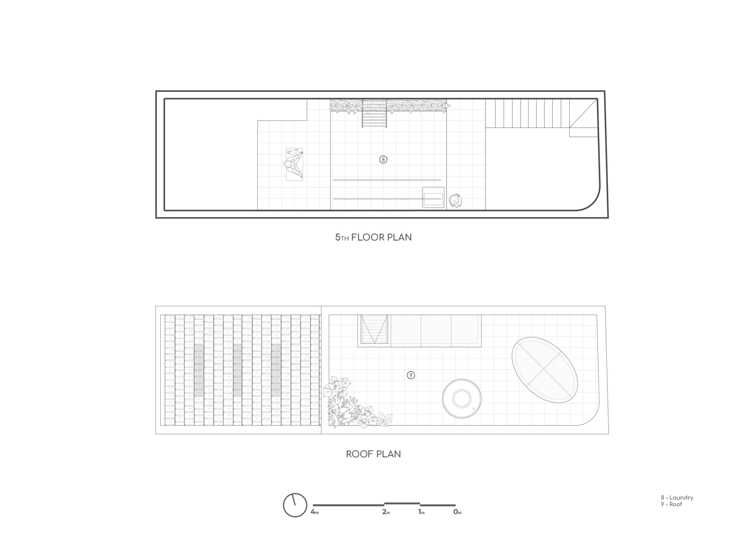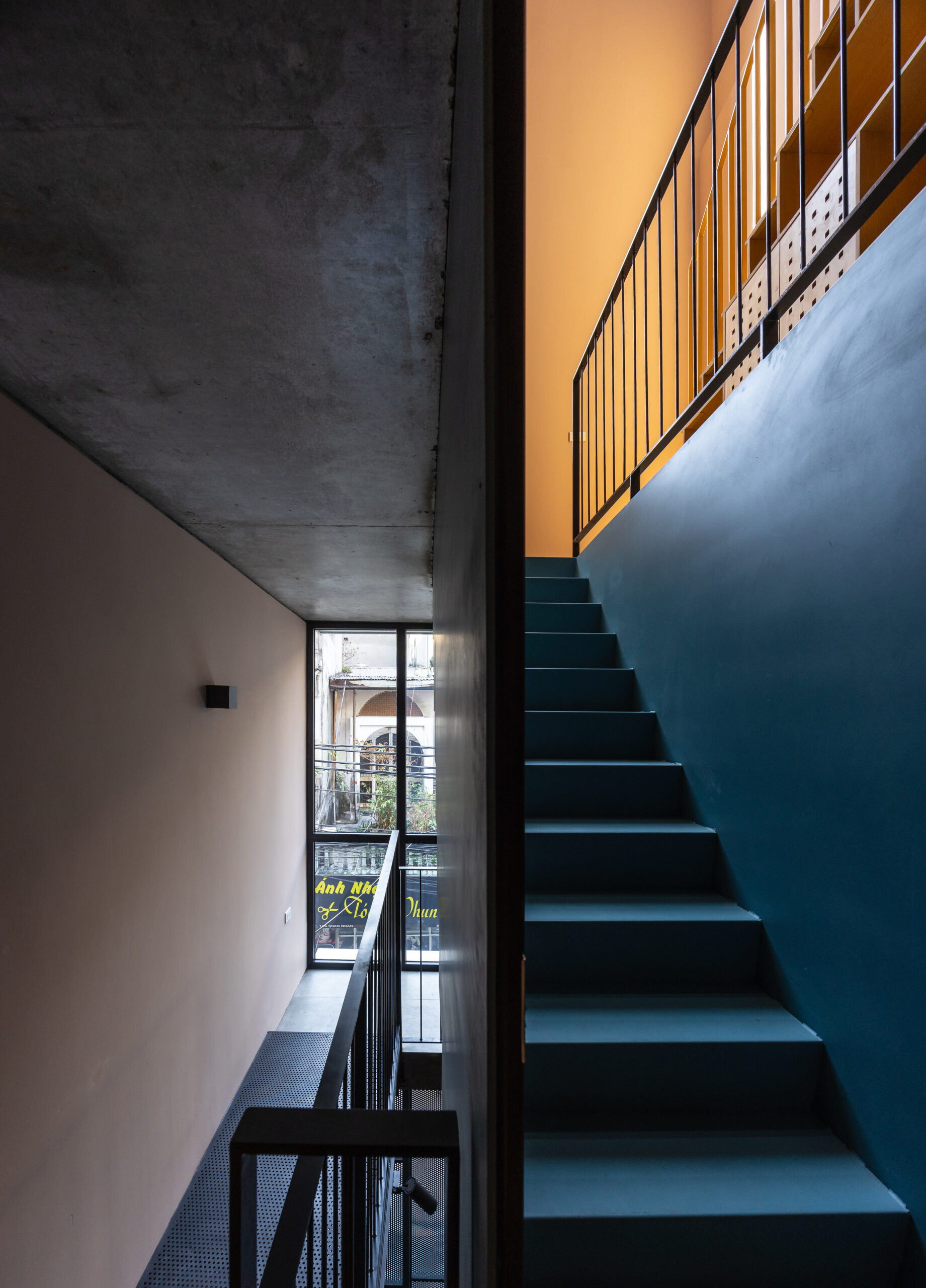 Cấu trúc ngôi nhà chia thành 2 phần : Ở và Cho thuê. Không gian Ở được nâng đến một chiều cao nhất định để tránh xa tiếng ồn và bụi bặm, lợi thế là tạo nên một không gian thoáng đãng cho các hoạt động kinh doanh tại tầng một. Mặc dù có hạn chế về diện tích và tầm nhìn, nhưng không vì thế mà ngôi nhà thiếu đi những khoảng trống chứa đựng nhiều năng lượng và ánh sáng tự nhiên. Dường như bầu trời là thứ duy nhất không mang lại giới hạn cho ngôi nhà.