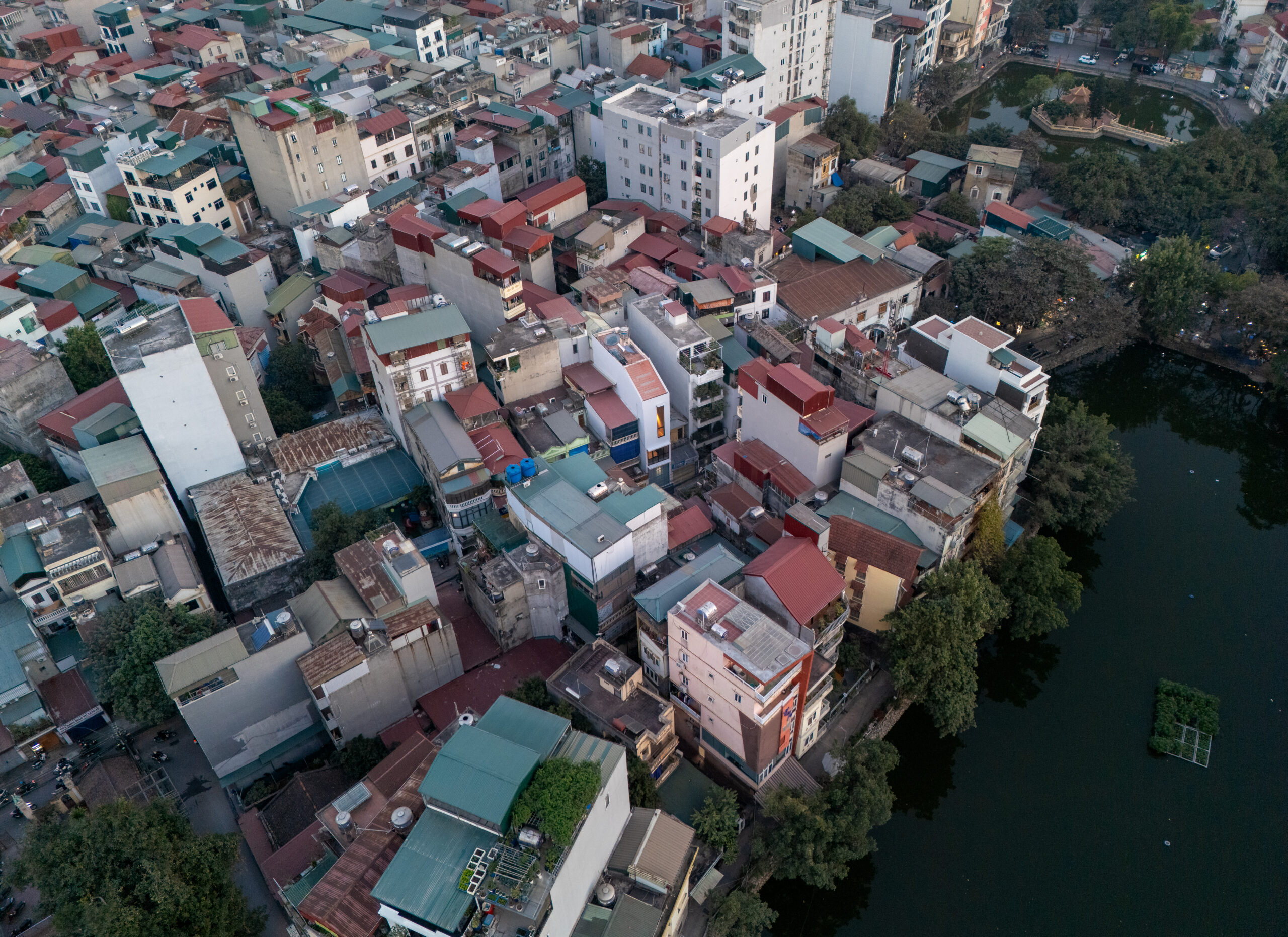 Gạch giếng đáy, những viên ngói nung đỏ vốn là những vật liệu rất quen thuộc với các ngôi làng tại Việt Nam, sự hiện diện của chúng đã tạo nên bầu không khí gần gũi, phần nào gắn kết đời sống của một gia đình nhỏ mới chuyển đến với những không gian văn hóa còn lại của một khu Làng.