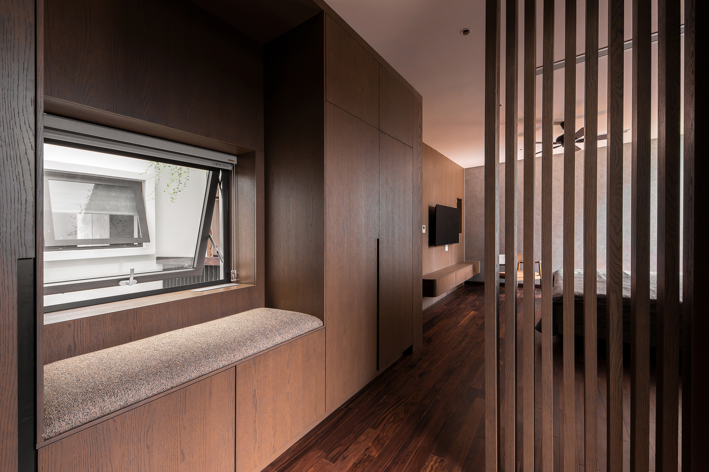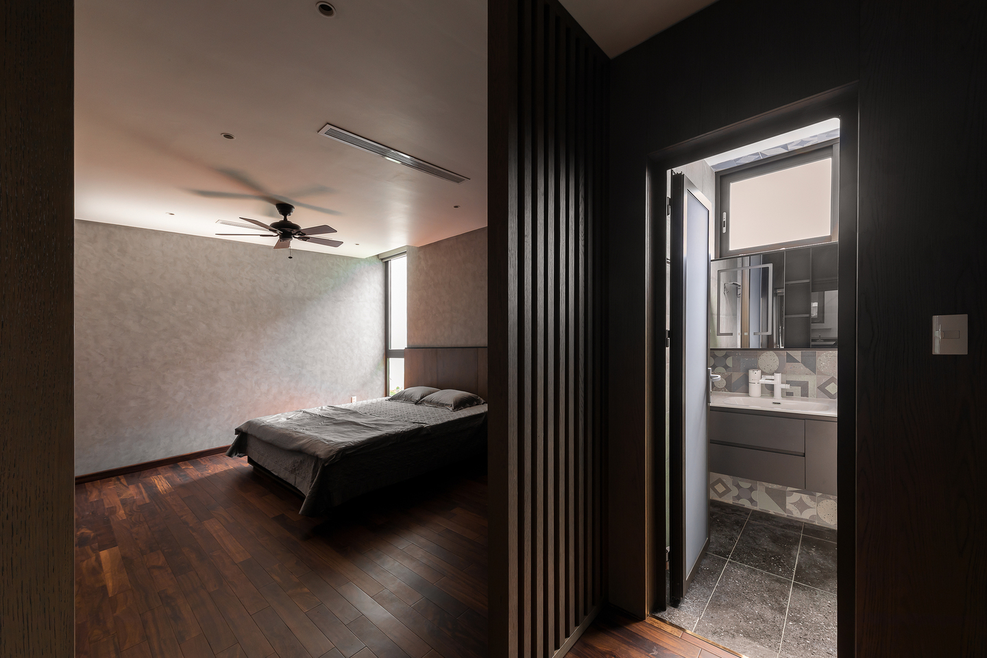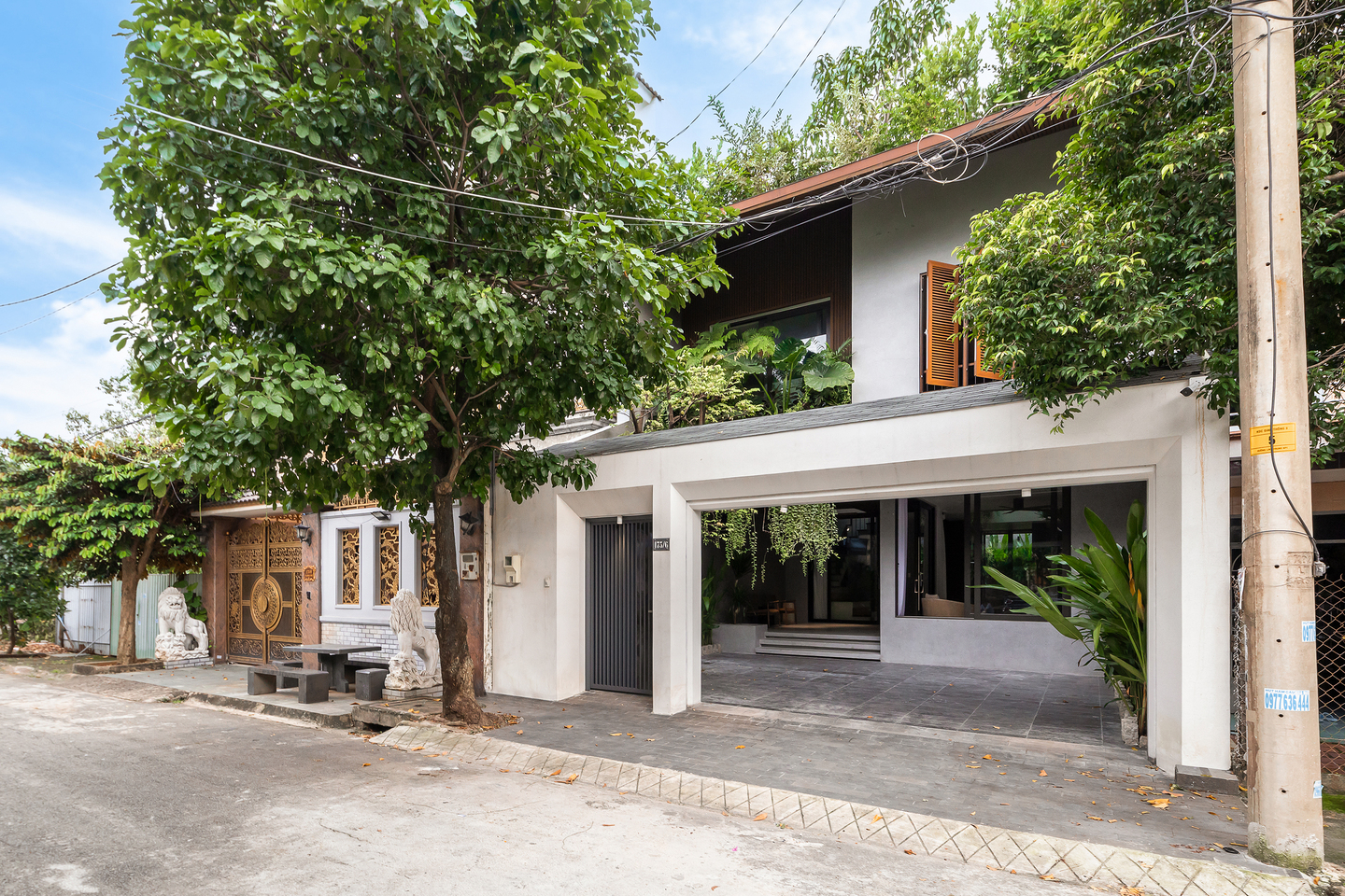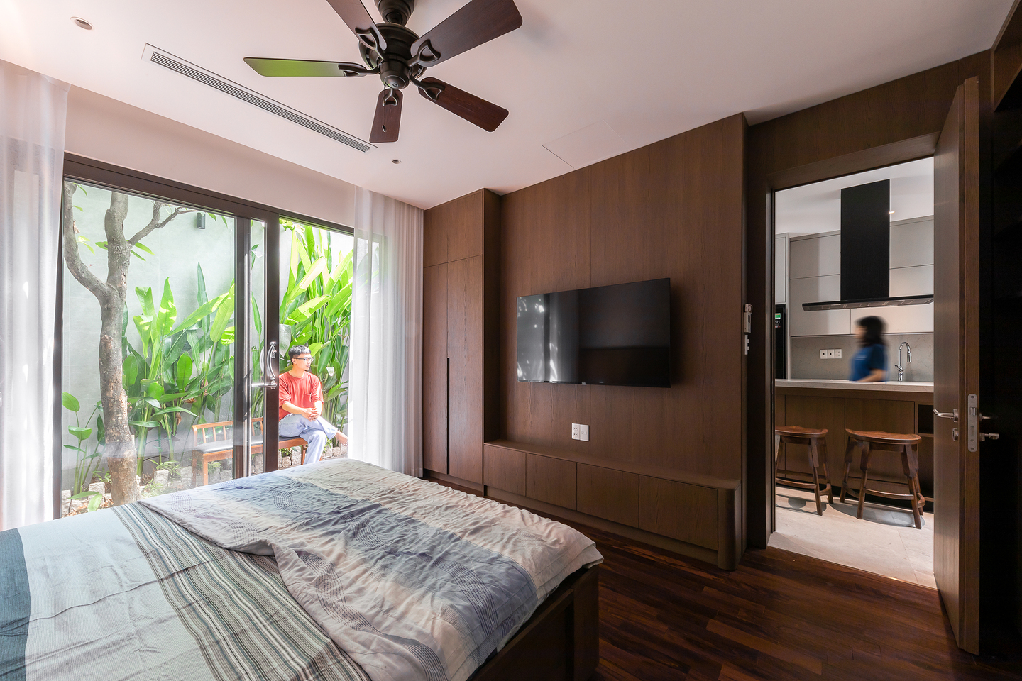 Các chất liệu mộc mạc, từ đá mài , gỗ , sơn giả bê tông…. những vật liệu mang tính mộc mạc và kết hợp với các mảng tường sơn trắng, ánh sáng , cây xanh cũng có sự năng động tươi sáng trung hòa cho bà và cháu cùng ở chung một ngôi nhà
