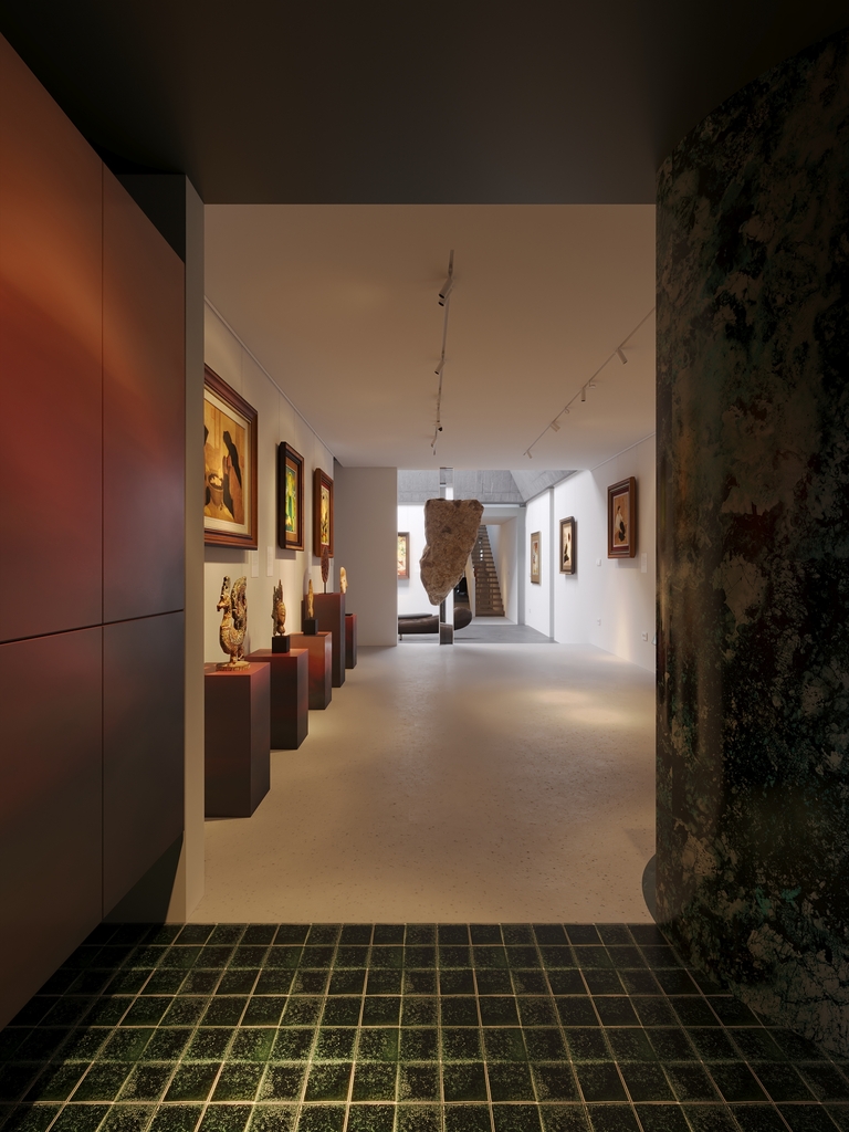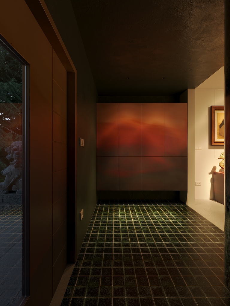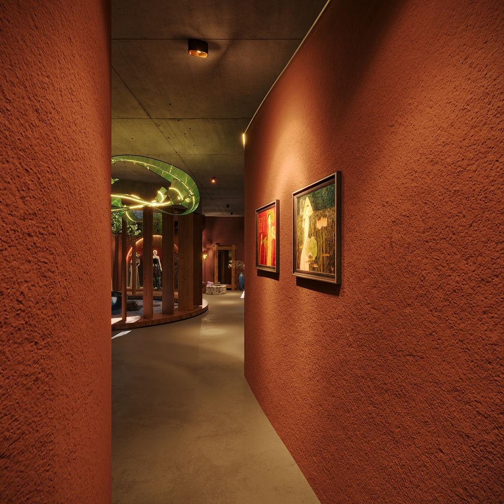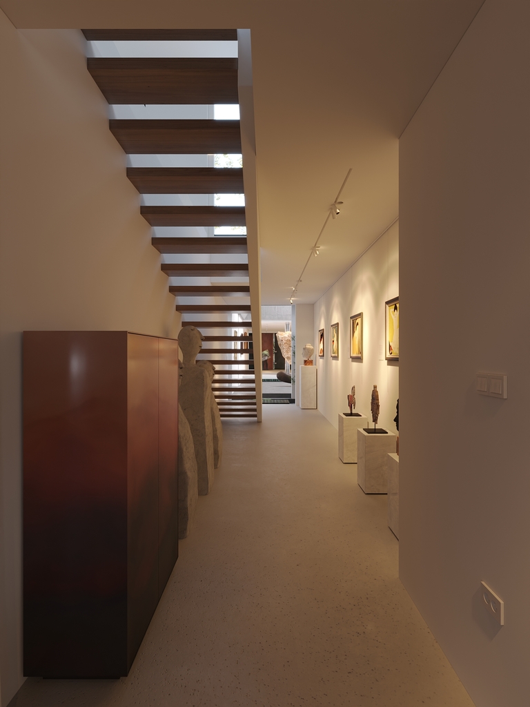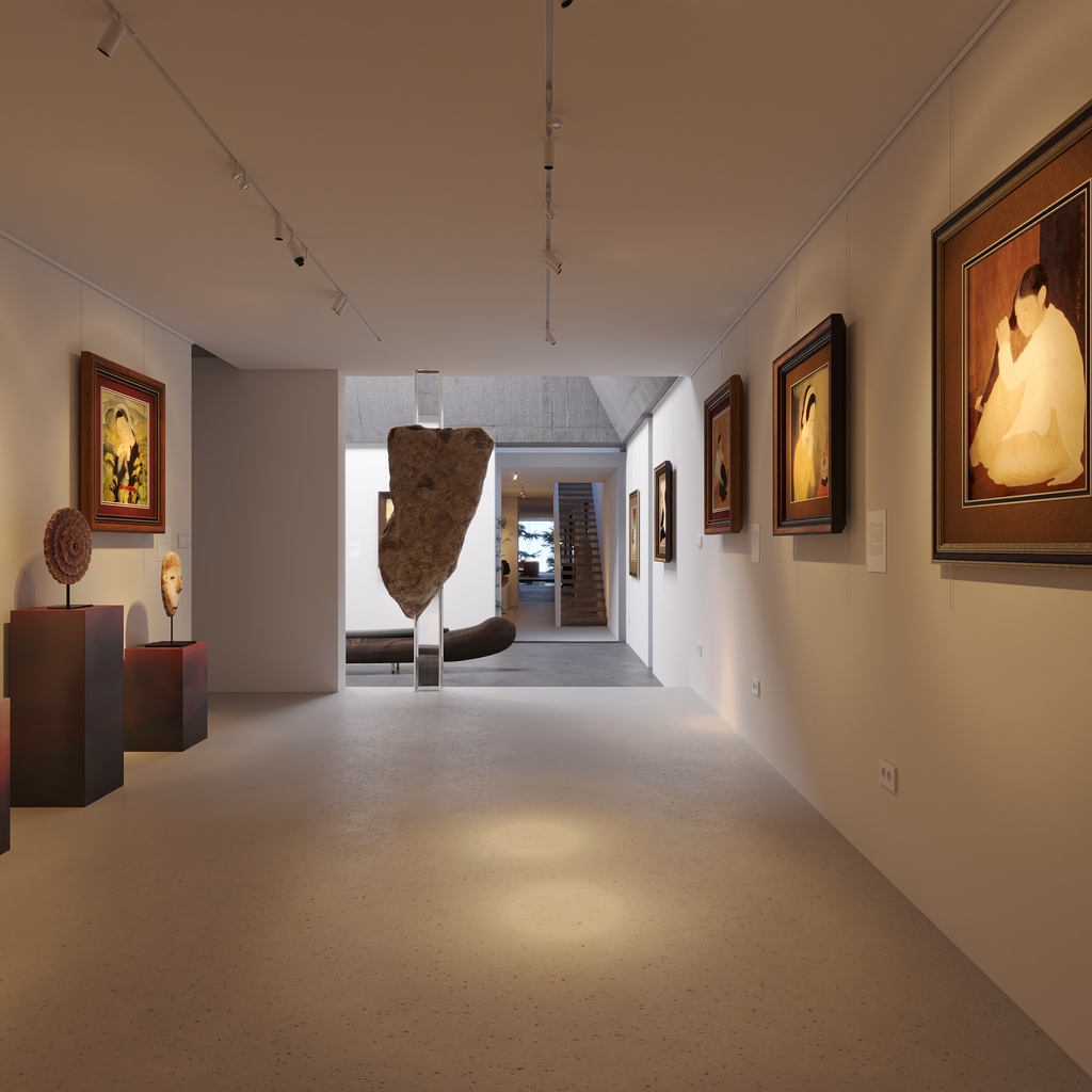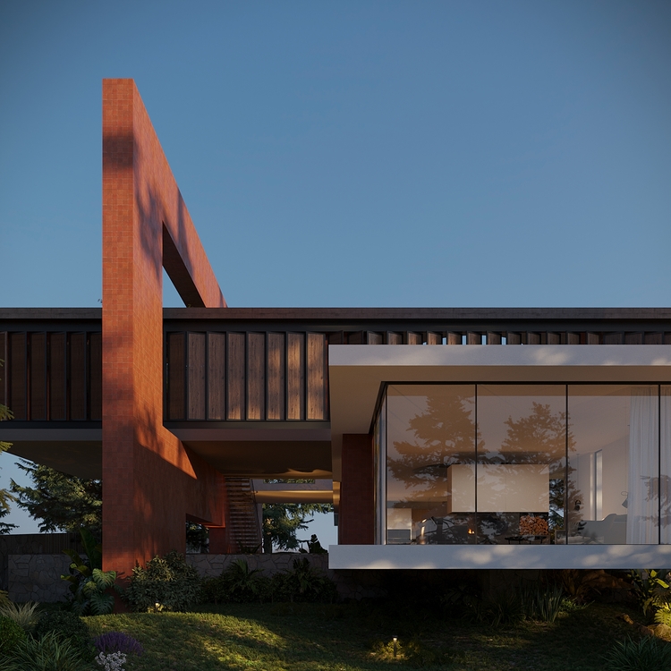 Trọng tâm của dự án không đơn thuần là việc tạo ra một ngôi nhà, mà là kiến tạo một không gian sống gắn bó chặt chẽ với thiên nhiên. Các không gian sinh hoạt được mở rộng tầm nhìn ra hồ và cảnh quan xung quanh, mang lại cảm giác thư thái, yên bình và “ngâm mình” trong thiên nhiên. Giếng trời hình tròn đóng vai trò như một điểm kết nối trực tiếp giữa không gian nội thất và bầu trời, giúp tăng cường ánh sáng tự nhiên, thông gió và tạo nên sự cân bằng giữa kiến trúc và môi trường.