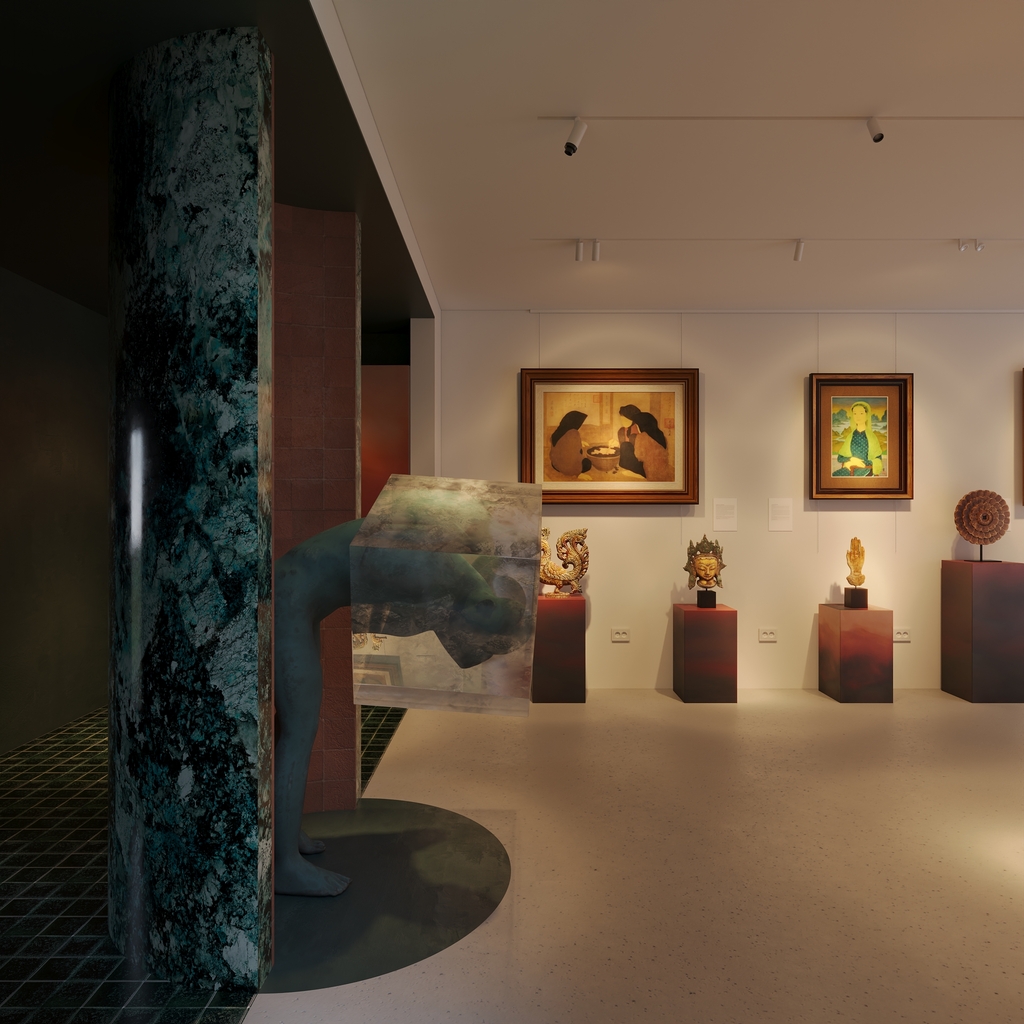 Công trình được tổ chức theo phương pháp tách khối, thể hiện rõ trong sơ đồ exploded axonometric. Các khối kiến trúc dạng hộp được xếp chồng và tách rời, giúp làm rõ mối quan hệ giữa các không gian chức năng, đồng thời tạo nên hình thái kiến trúc linh hoạt, nhẹ nhàng. Công trình được nâng khỏi mặt đất, vừa giảm tác động đến địa hình tự nhiên, vừa tăng cường sự thông thoáng và kết nối với cảnh quan xung quanh.