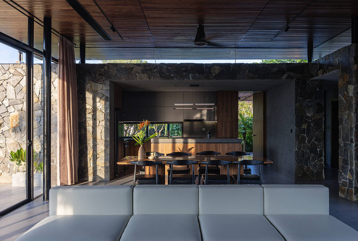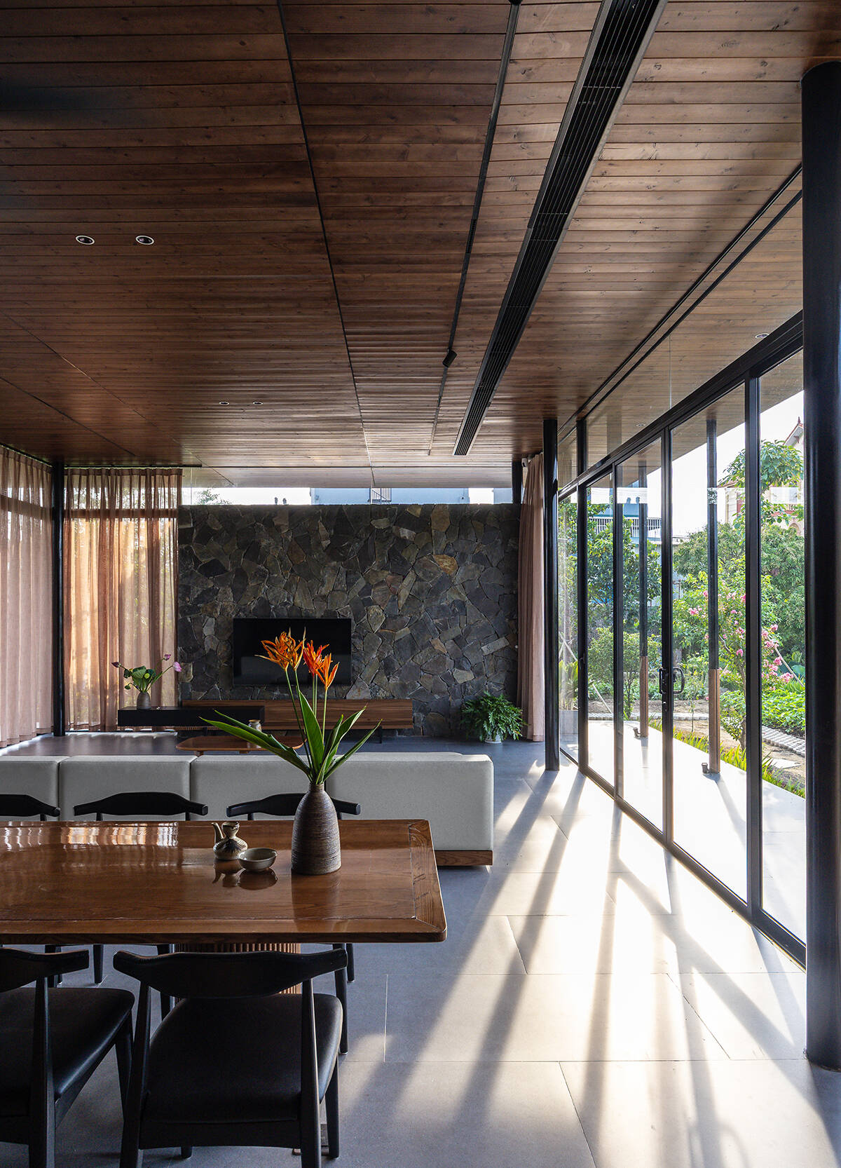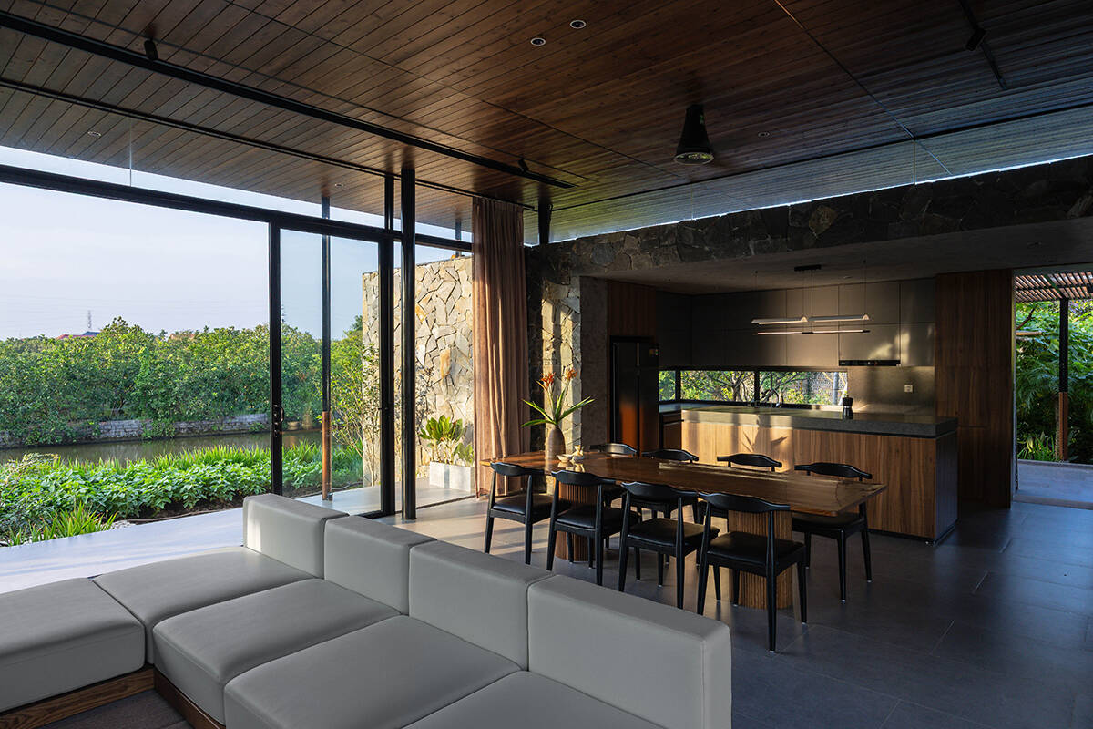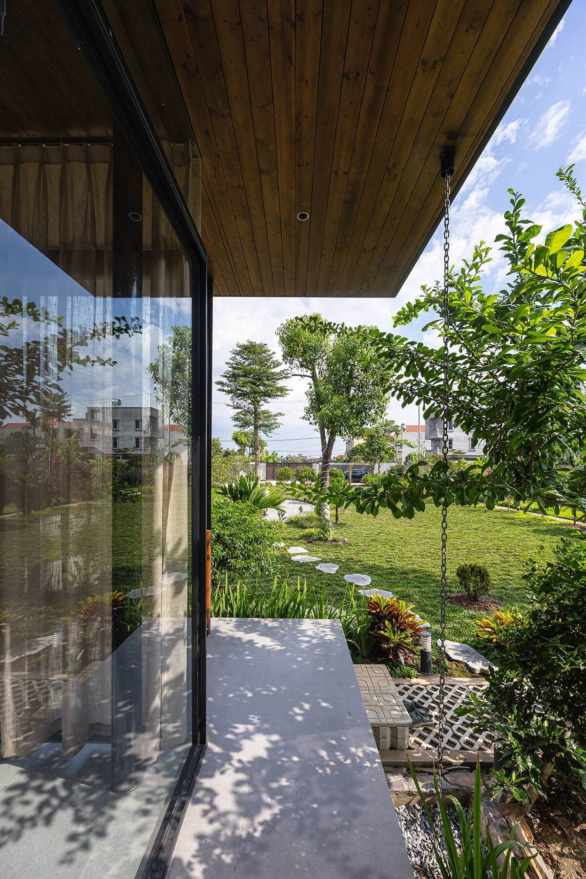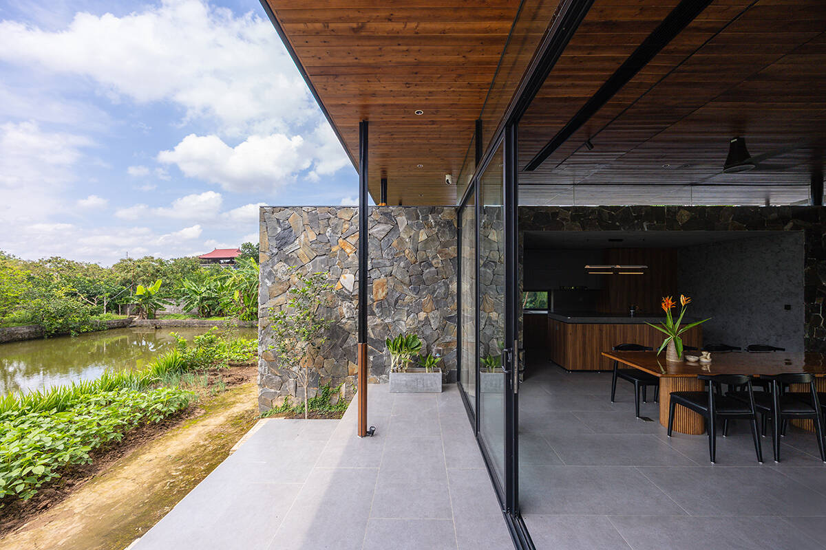 Về tổng thể, công trình không theo đuổi hình thức kiến trúc phô trương, mà tập trung vào việc tạo lập một môi trường sống cân bằng: đủ tiện nghi cho sinh hoạt hiện đại, nhưng vẫn giữ được sự gần gũi, chậm rãi của đời sống nông thôn. Kiến trúc tại đây trở thành nền tảng cho sự kết nối – giữa con người với thiên nhiên, giữa các thế hệ trong gia đình, và giữa hiện đại với bản sắc địa phương.