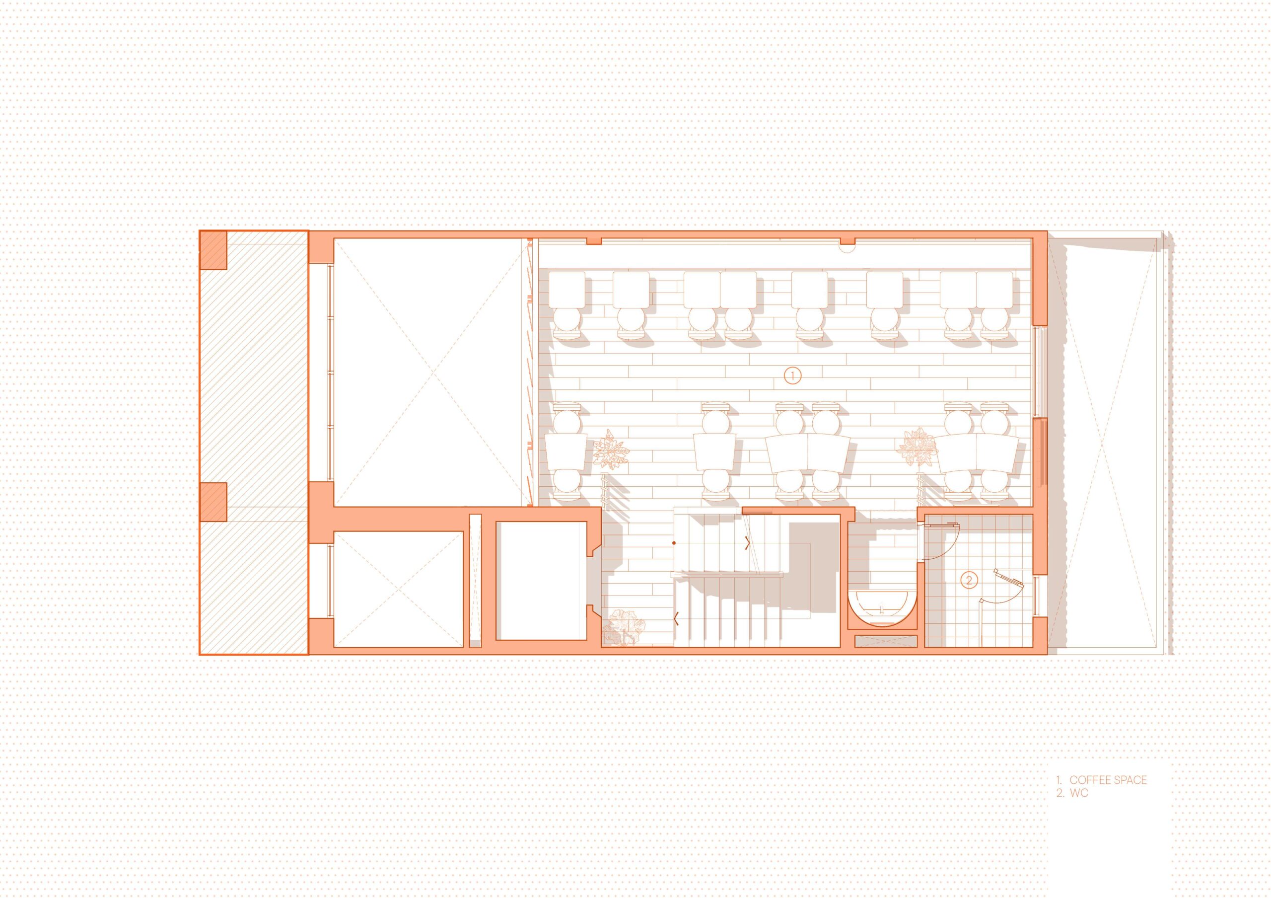 Khu đất ban đầu là một khu vườn nhỏ, gắn liền với một ngôi nhà cũ, nay được chuyển đổi công năng để trở thành một quán cà phê phục vụ các món ăn và nước uống thuần chay. Chúng tôi không muốn sự hiện diện của kiến trúc làm mất đi giá trị vốn có của khu vườn. Làm sao để khu vườn vẫn thuộc về ngôi nhà, nhưng đồng thời cũng trở thành một phần không thể tách rời của quán cà phê? Chúng tôi lựa chọn một giải pháp tối giản, giữ nguyên tinh thần của khu đất, chỉ tinh chỉnh vừa đủ để hình thành một không gian mới mà không phá vỡ sự cân bằng sẵn có.