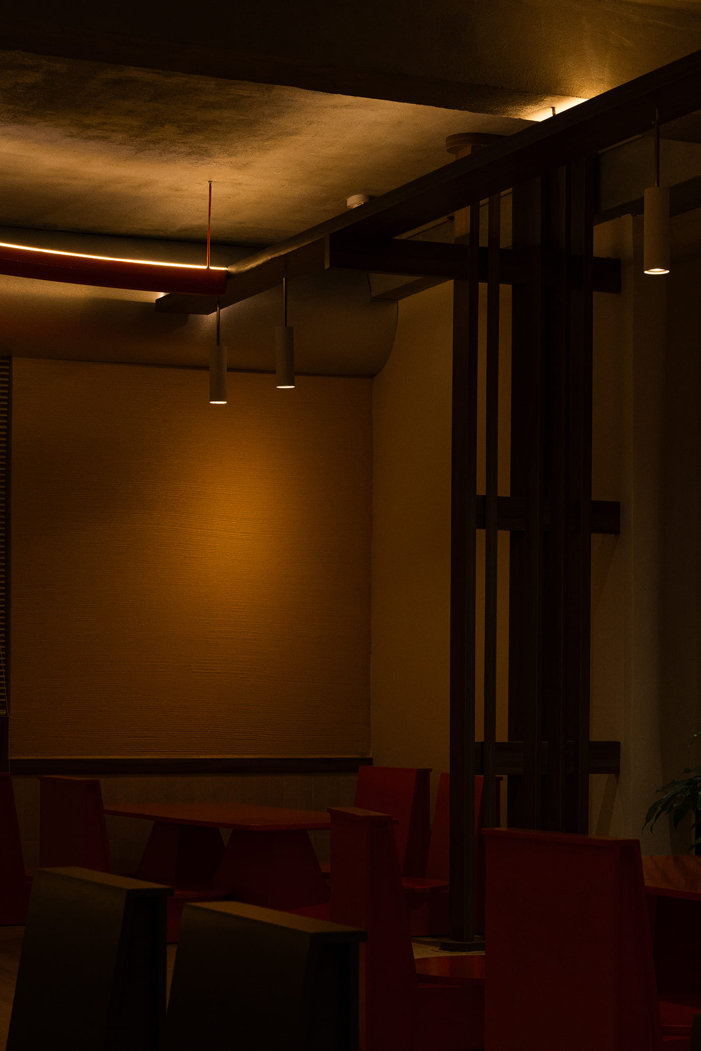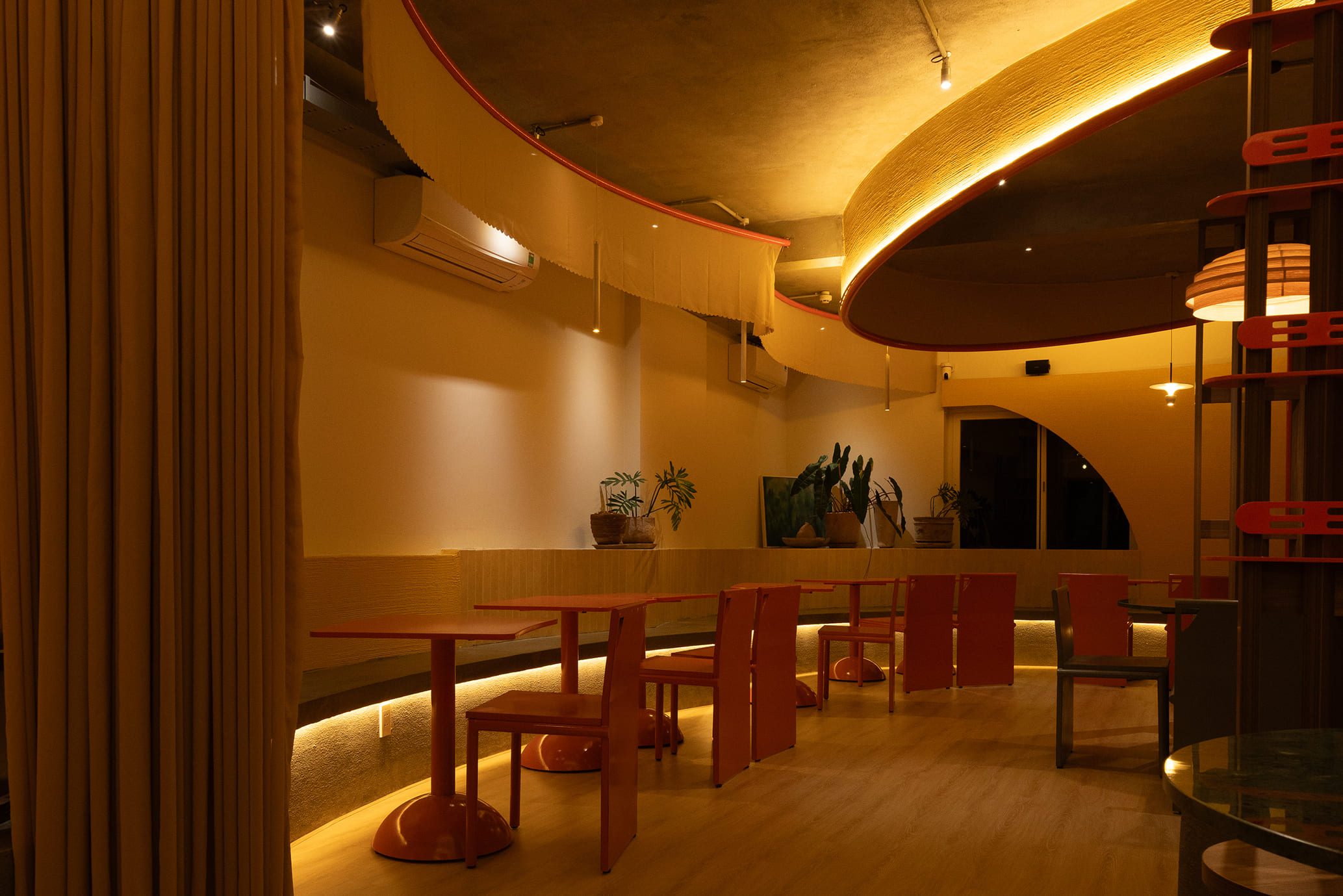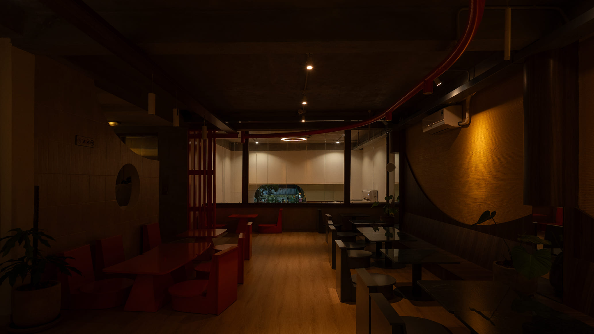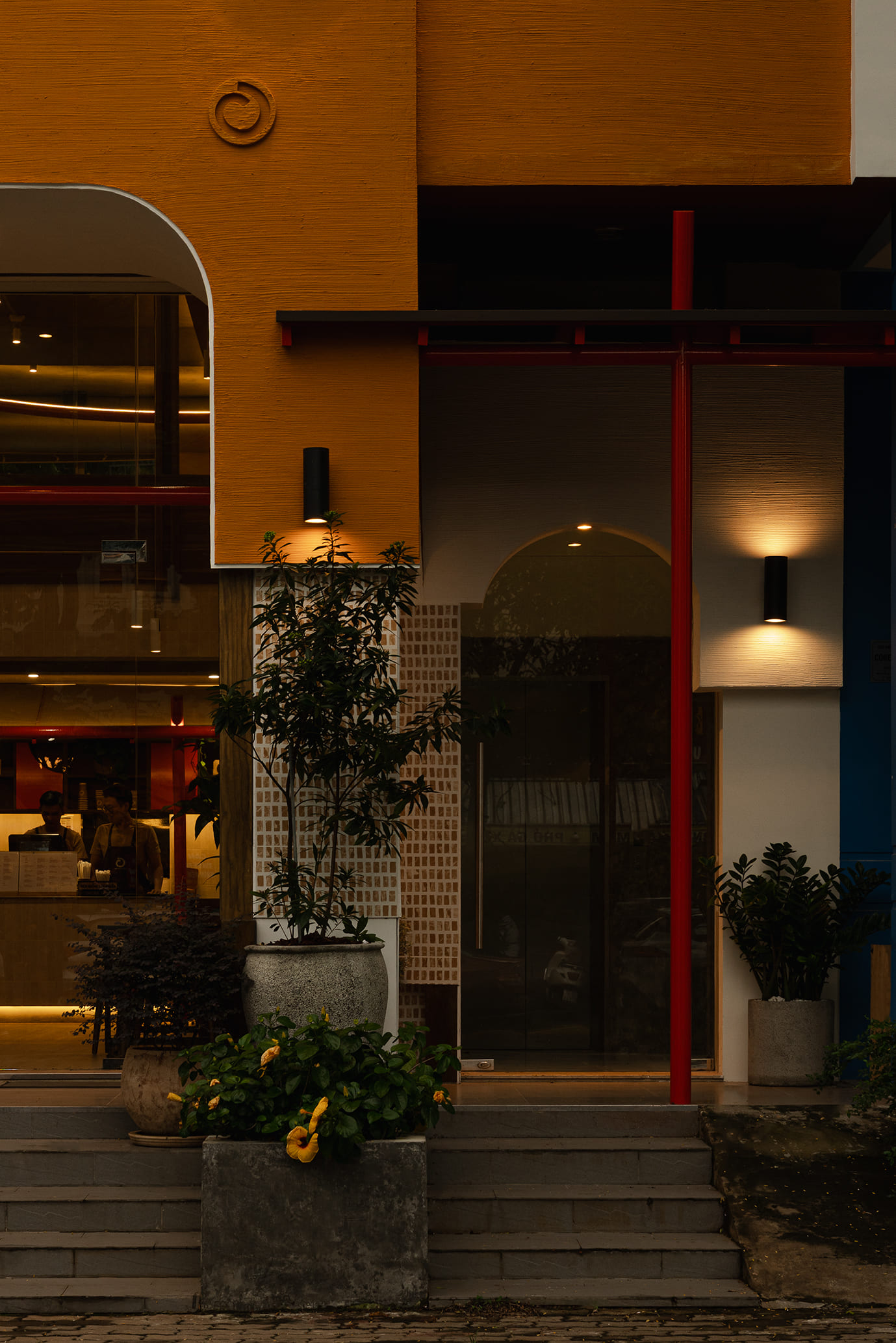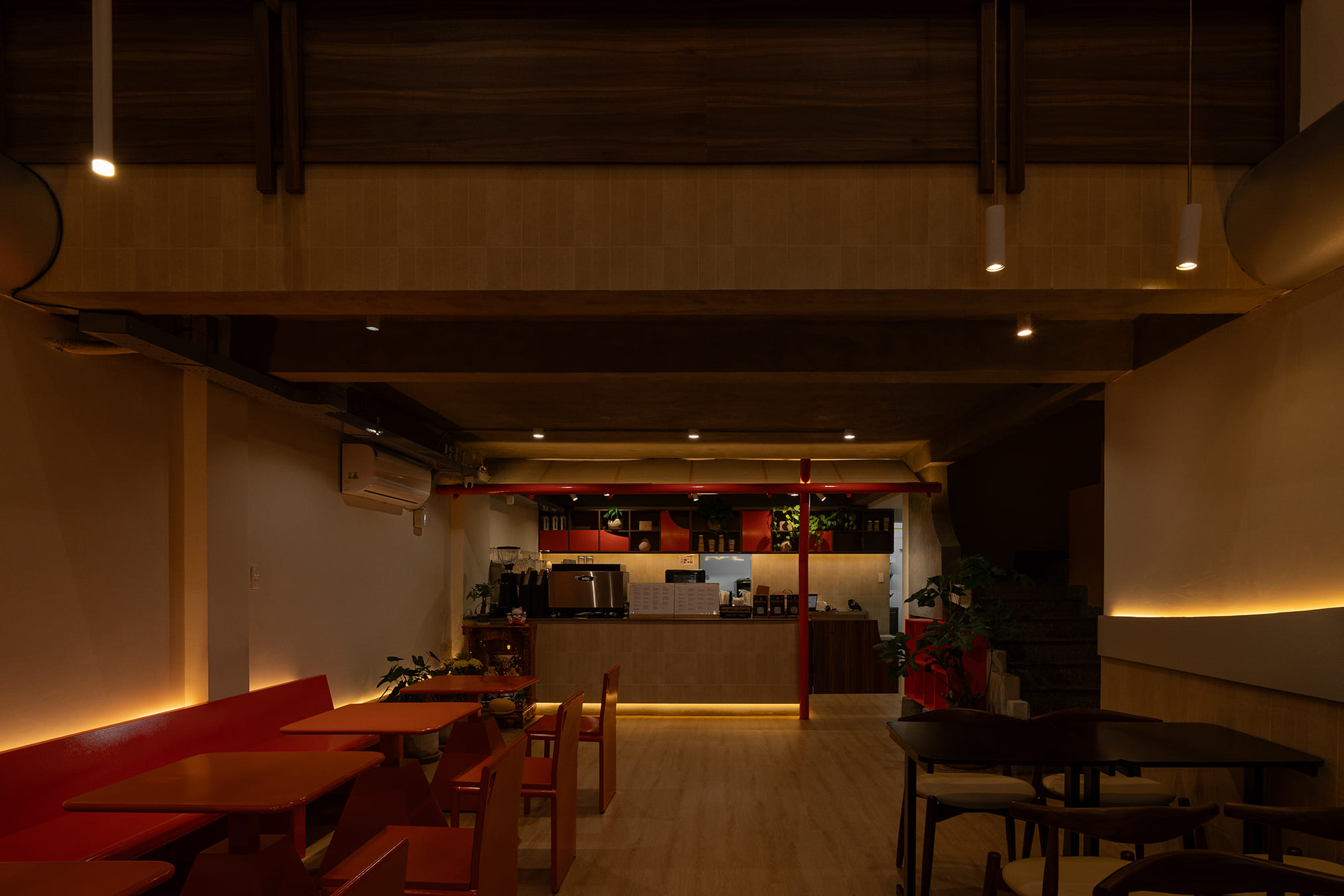 Những vách ngăn ước lệ được sử dụng để phân định không gian một cách mềm mại, tạo ra sự chuyển tiếp linh hoạt thay vì những ranh giới cứng nhắc. Chúng định hình các vùng chức năng một cách tự nhiên, đảm bảo tính riêng tư nhưng vẫn giữ được sự kết nối với khu vườn. Cùng một khoảng xanh, nhưng giờ đây, cả hai không gian—ngôi nhà và quán cà phê—đều có thể cộng hưởng, cùng chia sẻ giá trị của nó theo một cách mới.
