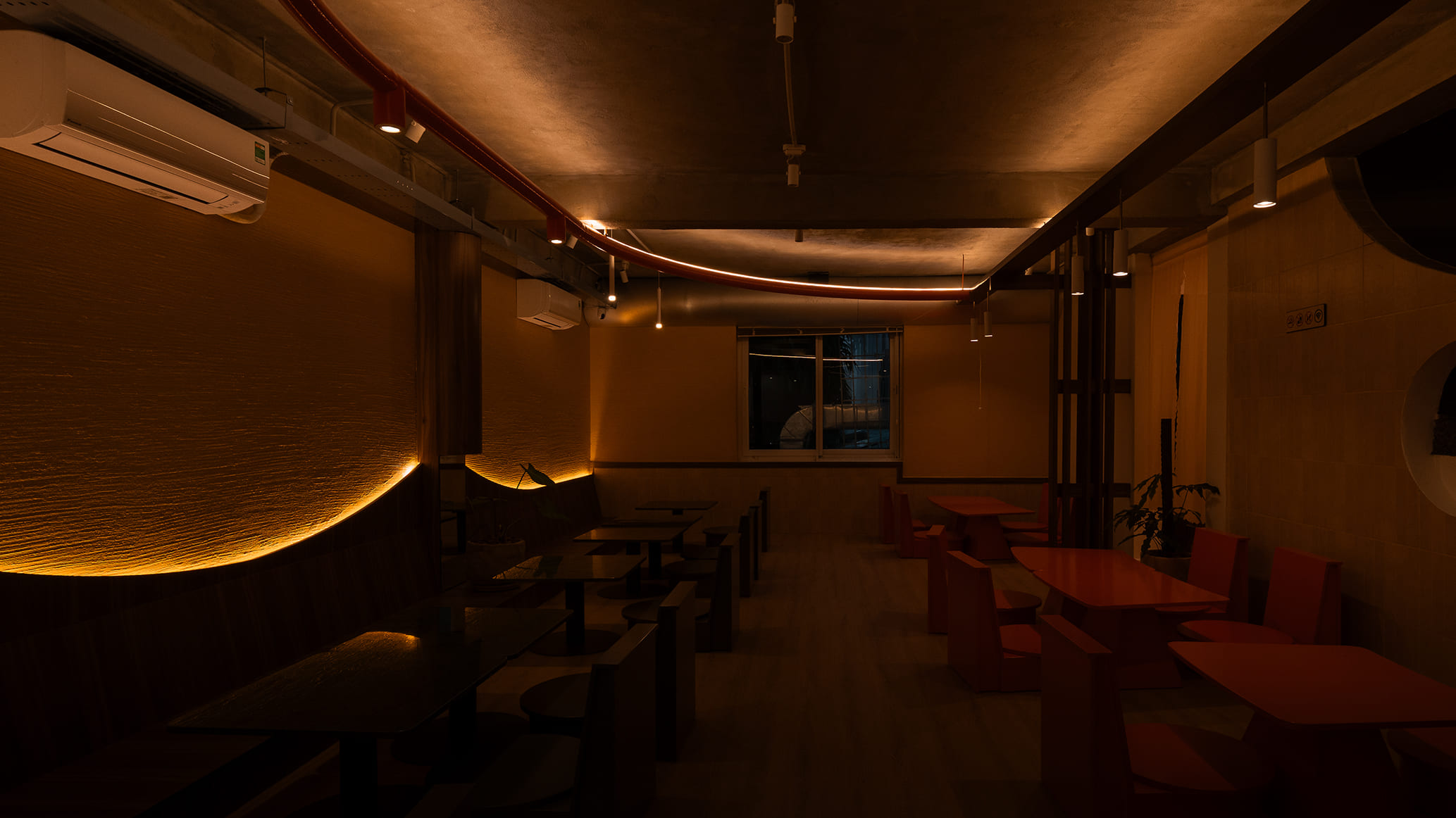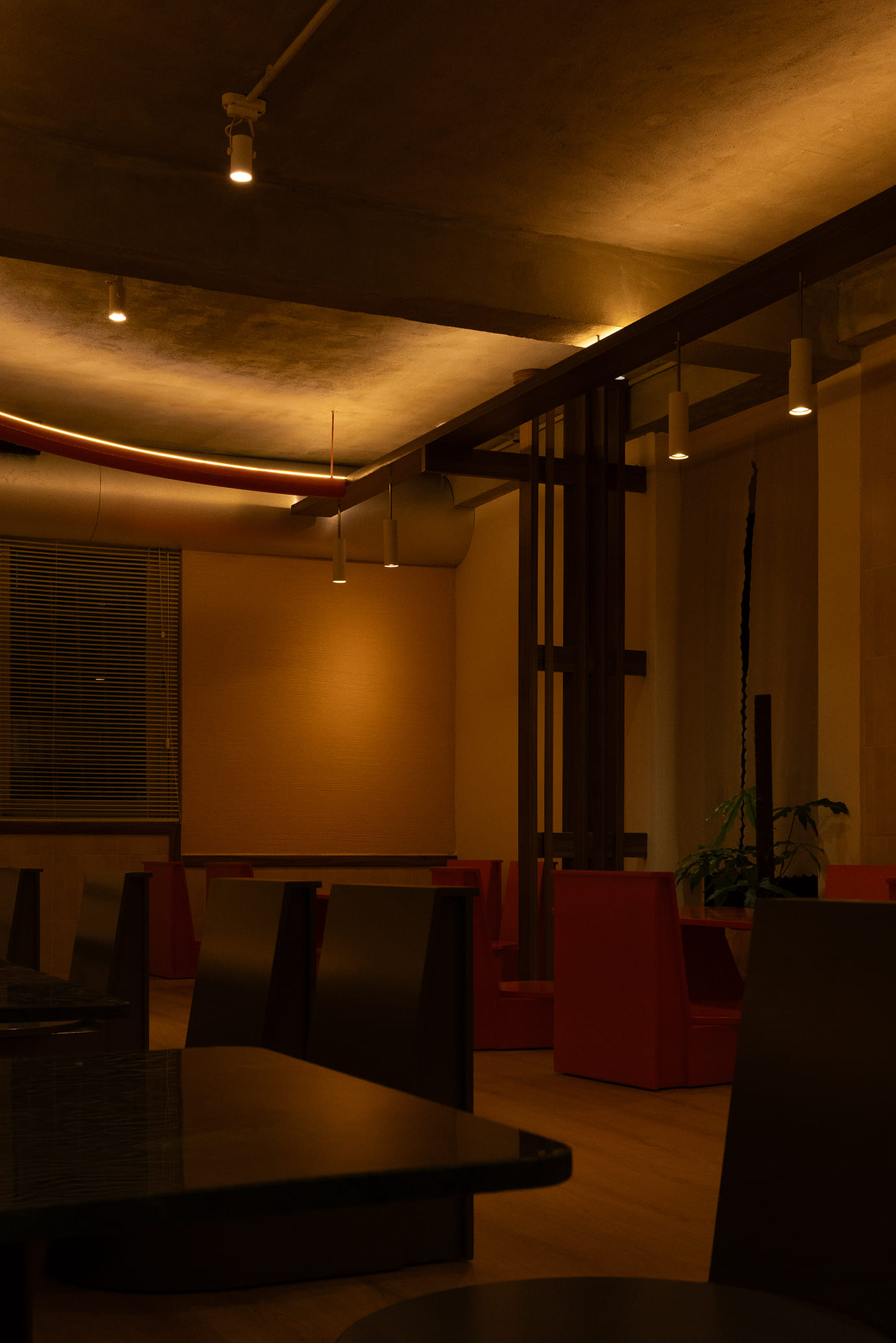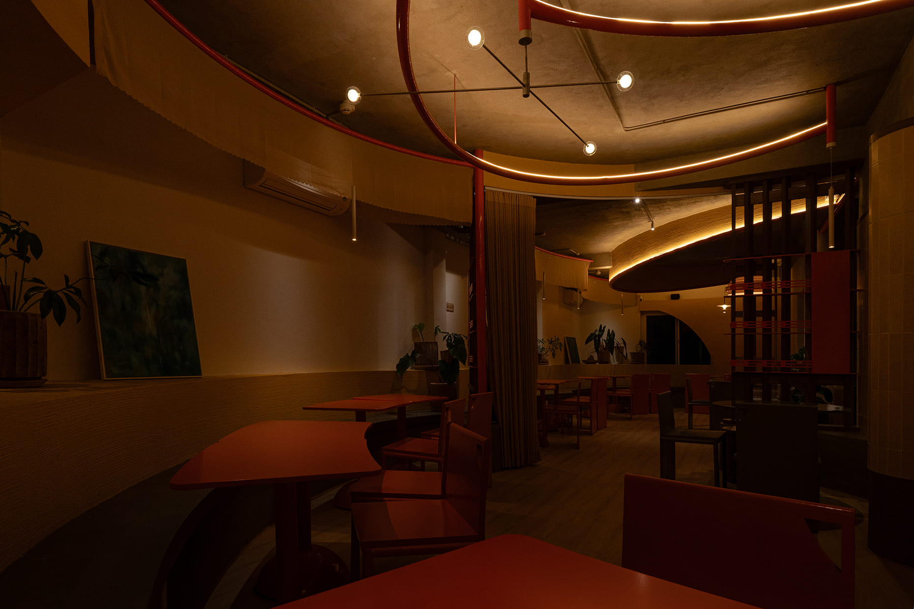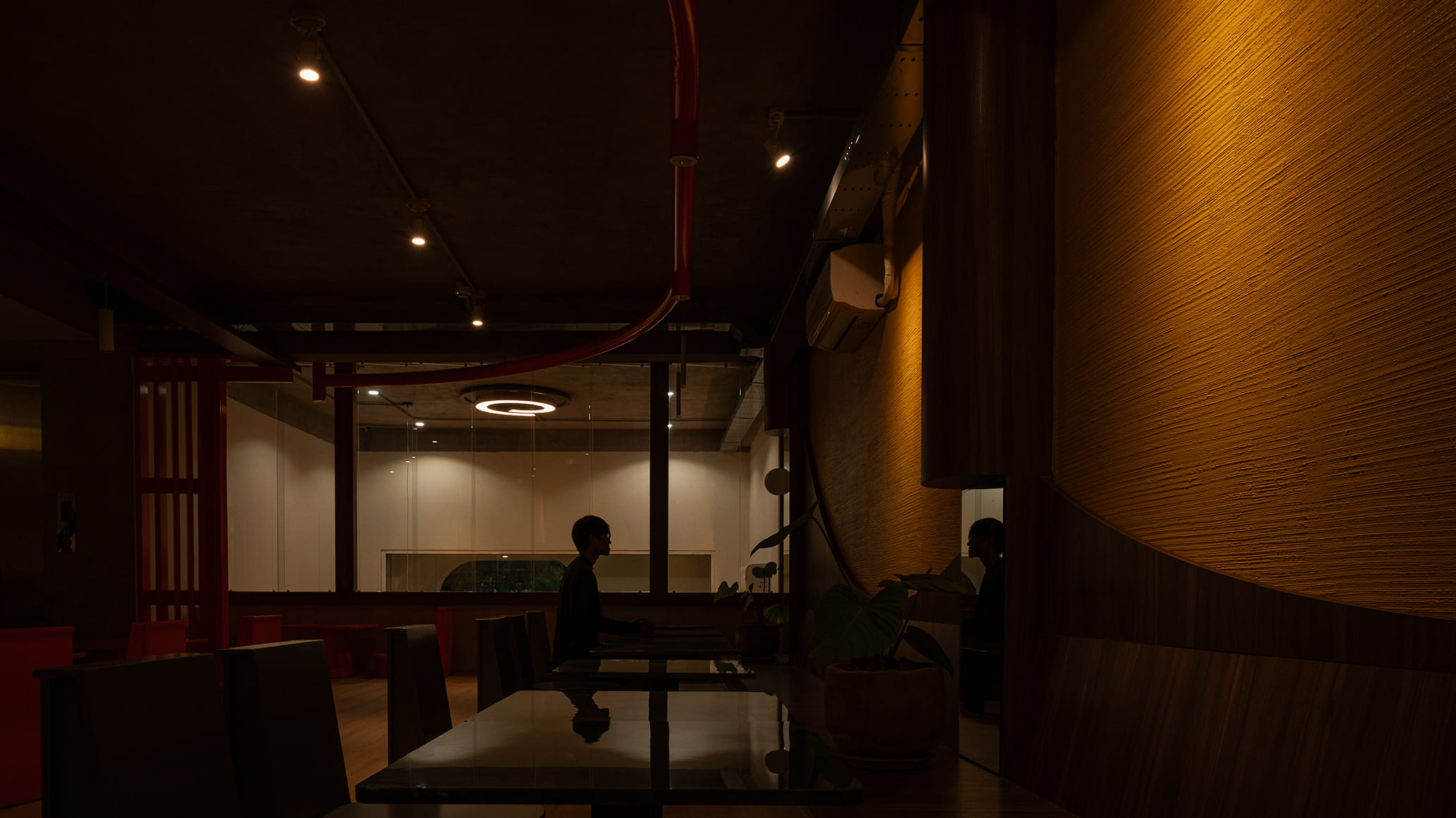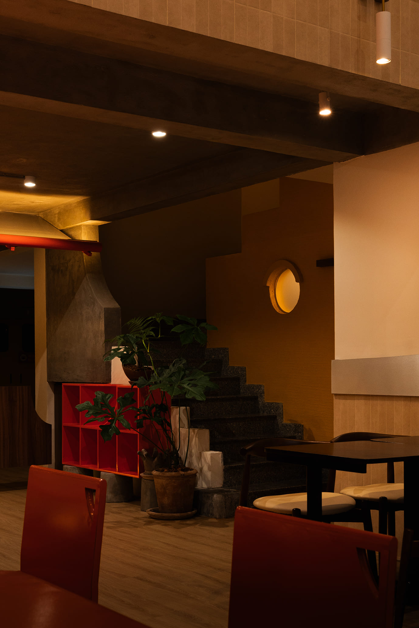 Những vách ngăn ước lệ được sử dụng để phân định không gian một cách mềm mại, tạo ra sự chuyển tiếp linh hoạt thay vì những ranh giới cứng nhắc. Chúng định hình các vùng chức năng một cách tự nhiên, đảm bảo tính riêng tư nhưng vẫn giữ được sự kết nối với khu vườn. Cùng một khoảng xanh, nhưng giờ đây, cả hai không gian—ngôi nhà và quán cà phê—đều có thể cộng hưởng, cùng chia sẻ giá trị của nó theo một cách mới.