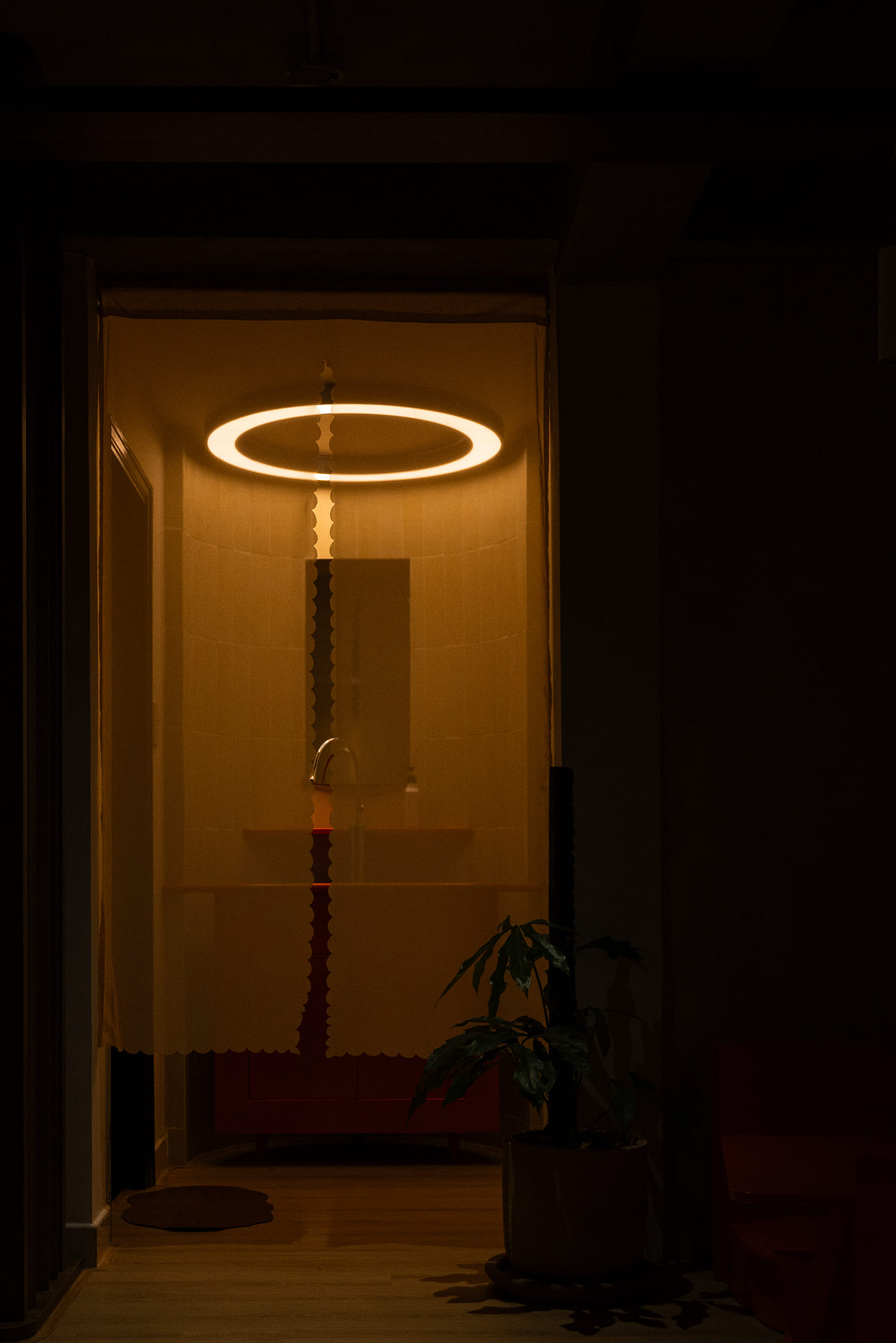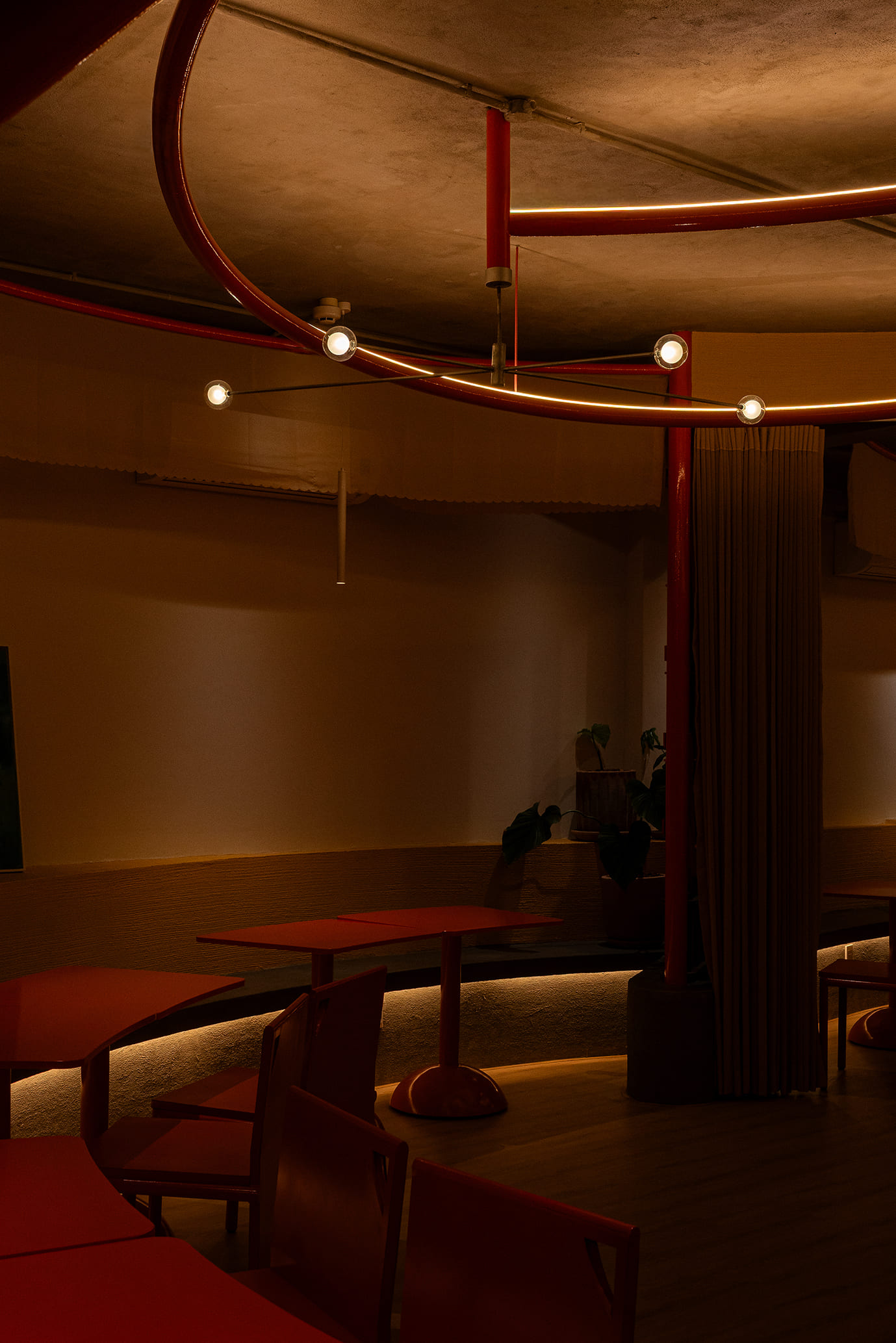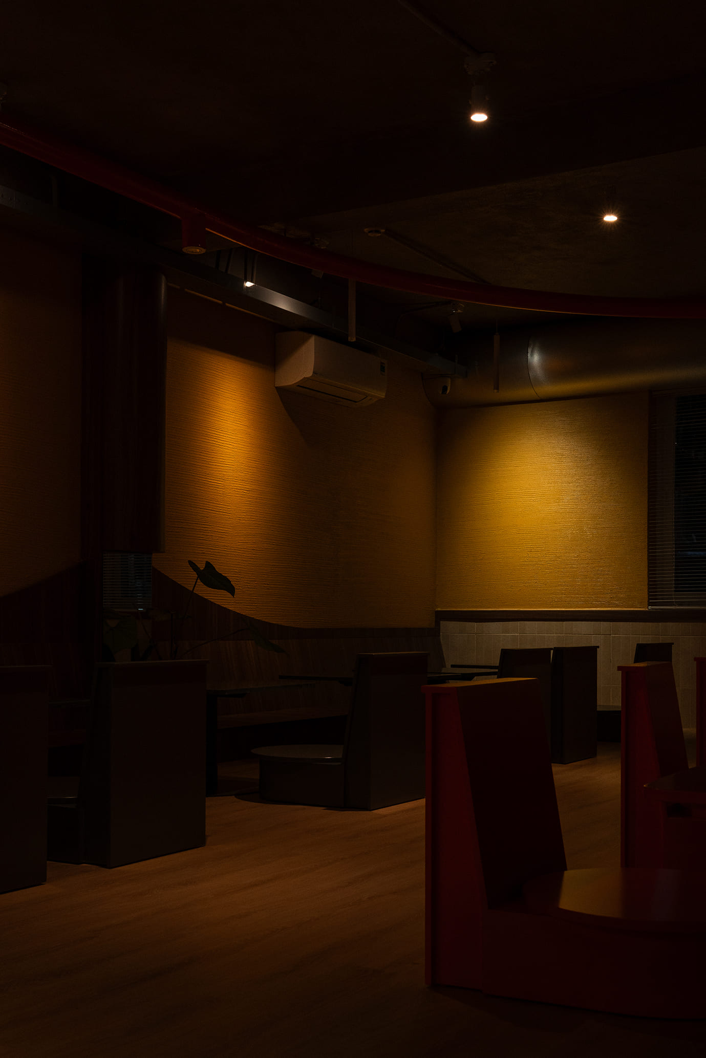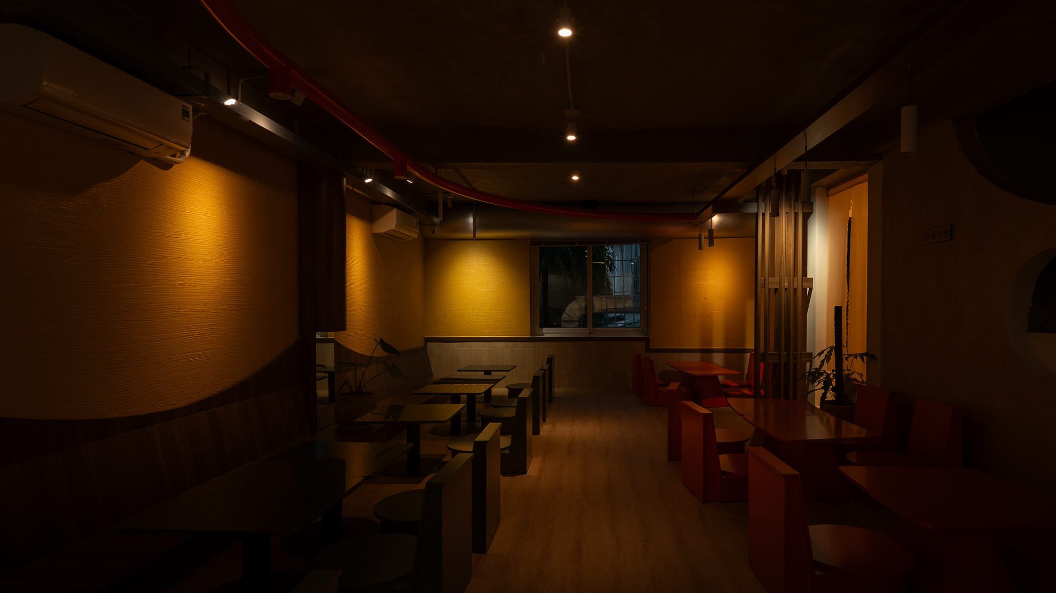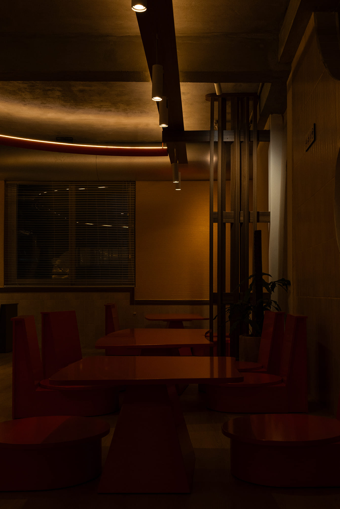 Những vách ngăn ước lệ được sử dụng để phân định không gian một cách mềm mại, tạo ra sự chuyển tiếp linh hoạt thay vì những ranh giới cứng nhắc. Chúng định hình các vùng chức năng một cách tự nhiên, đảm bảo tính riêng tư nhưng vẫn giữ được sự kết nối với khu vườn. Cùng một khoảng xanh, nhưng giờ đây, cả hai không gian—ngôi nhà và quán cà phê—đều có thể cộng hưởng, cùng chia sẻ giá trị của nó theo một cách mới.
