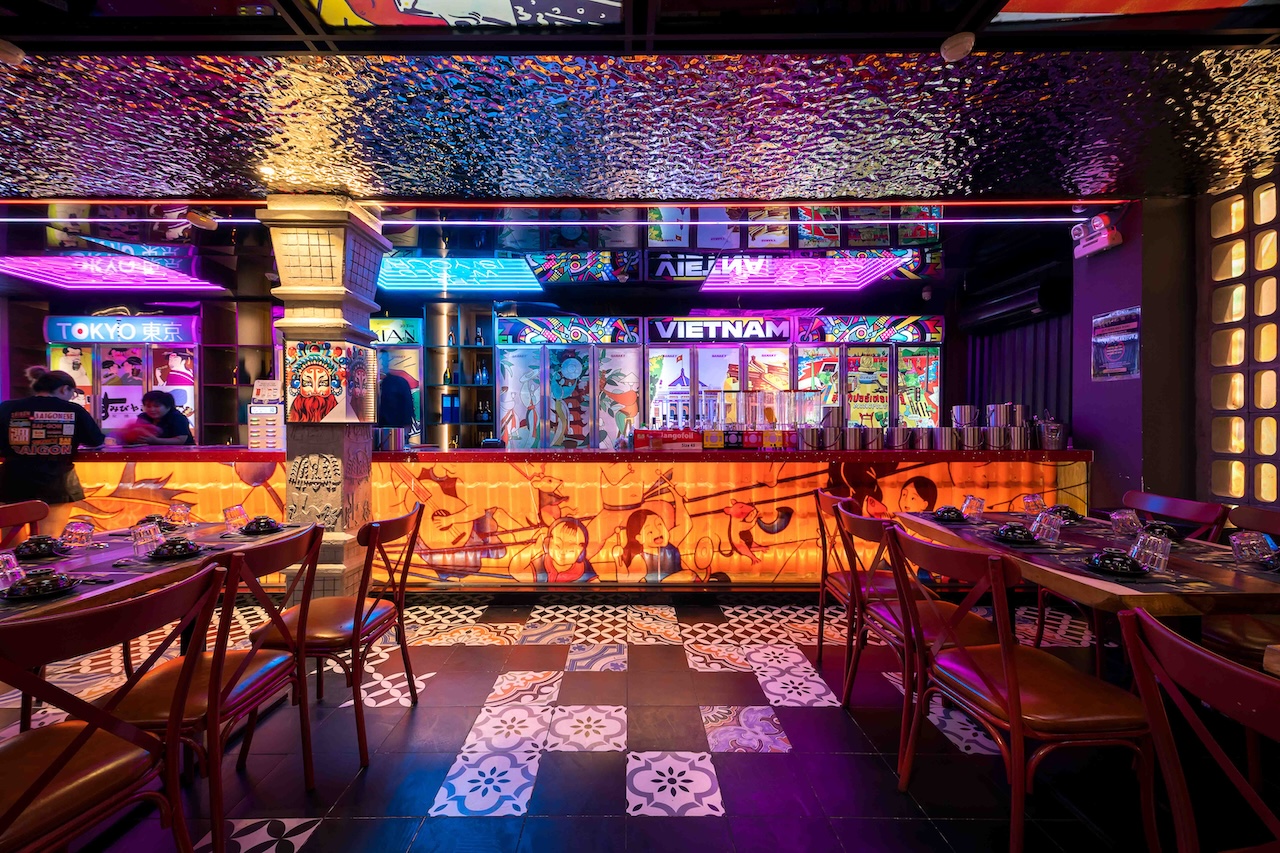 Nhà hàng Say & Nưa như một tác phẩm nghệ thuật dân gian của tổng thể các nước châu Á nhưng vẫn được dung hòa bởi nét hiện đại phù hợp với xu thế. Thiết kế này mang một vẻ đẹp xưa và nay kết hợp cho không gian ẩm thực trở nên vô cùng thú vị.