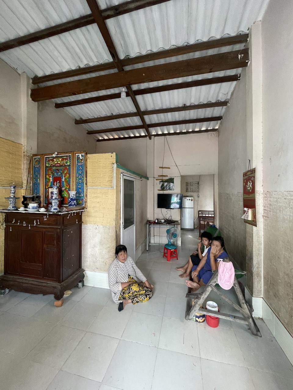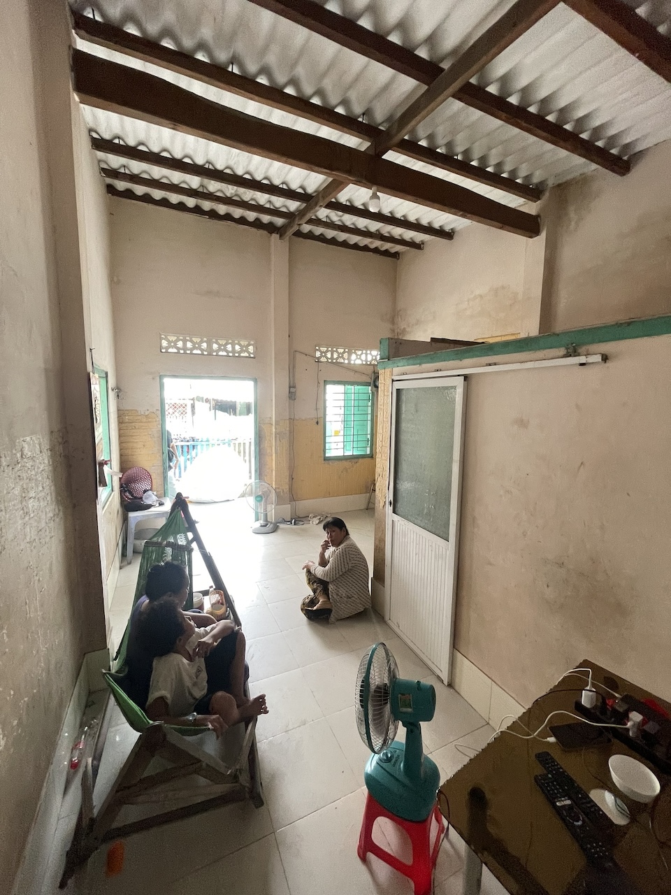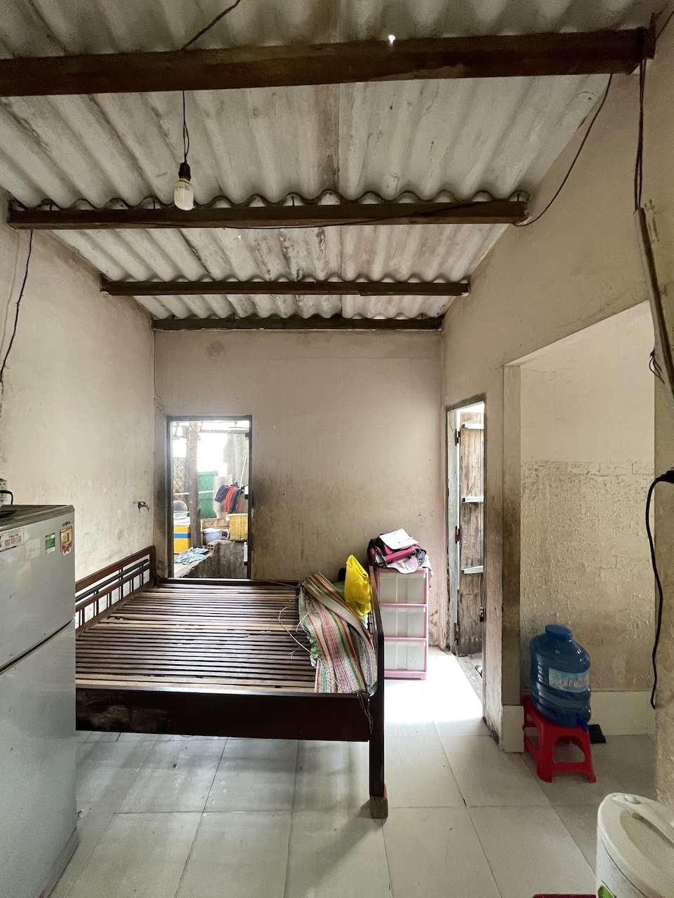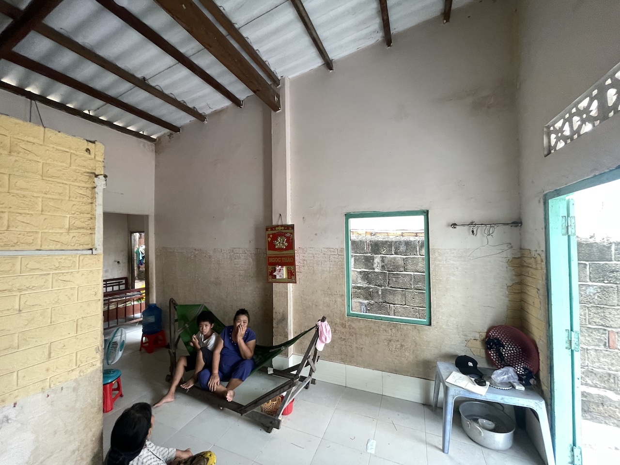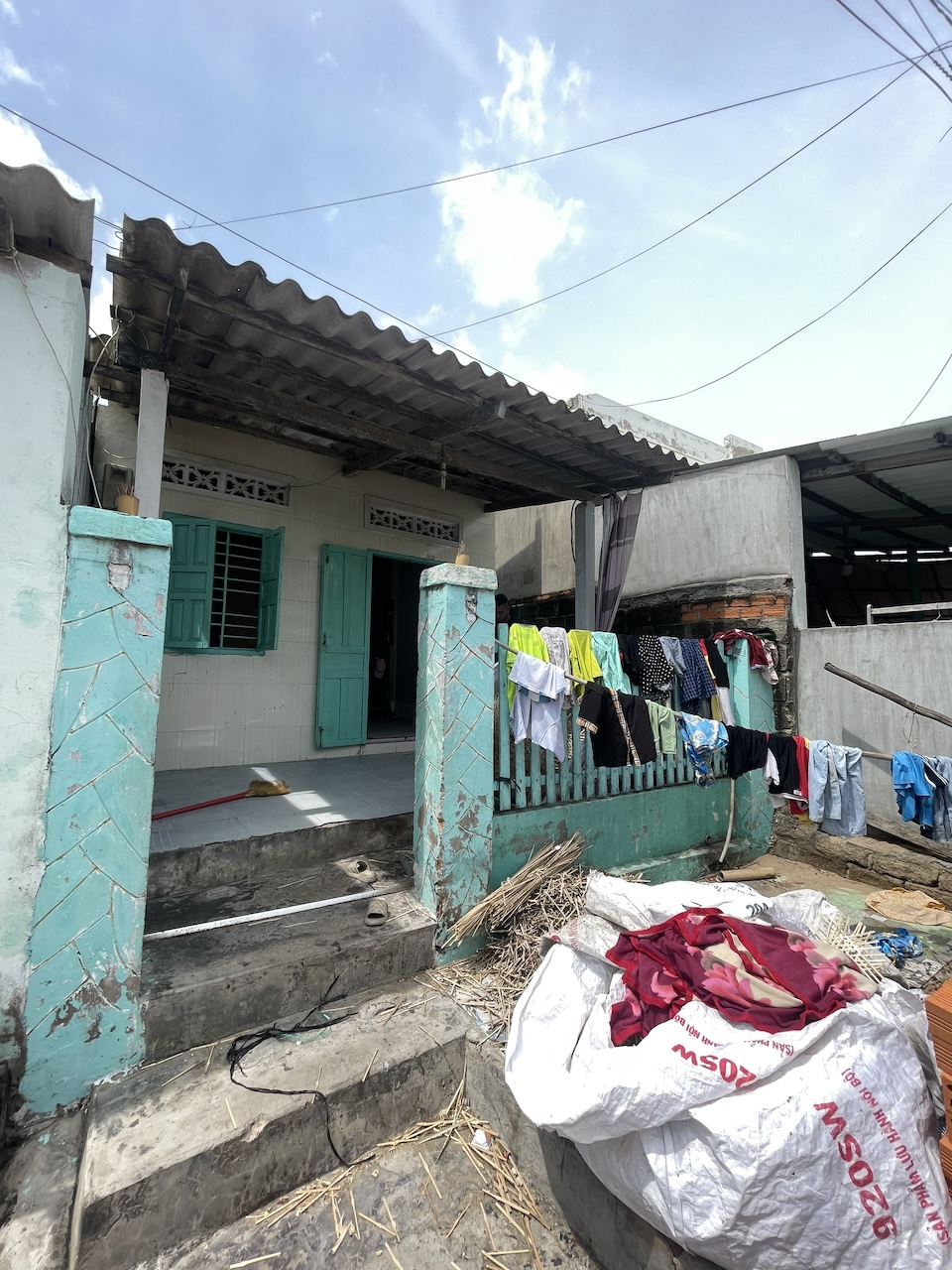 Thấu hiểu những trăn trở về niềm tin rằng cái mới có thể cải thiện mọi thứ, chúng tôi chọn cách tiếp cận đặc biệt cho dự án này. Hơn 70% giá trị nguyên bản của ngôi nhà được giữ lại và tái sử dụng, bao gồm kết cấu, công năng, lối giao thông, cũng như các vật liệu như gỗ và đá. Kết hợp với đó là những vật liệu quen thuộc của làng chài – tre, nứa, lồ ô lâu năm – những chất liệu đã gắn bó với vùng đất này hàng thập kỷ, giúp công trình duy trì sự gắn kết với kiến trúc xung quanh. Tường gạch thô, mái tôn nhựa, hệ vì kèo gỗ cùng gam màu trắng xuyên suốt trên tường, sàn, trần tạo nên một không gian dung dị nhưng đầy chất thơ, phản ánh nhịp sống mộc mạc của người dân địa phương.