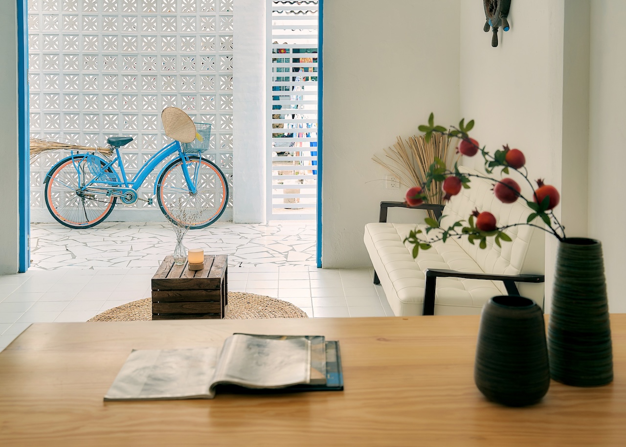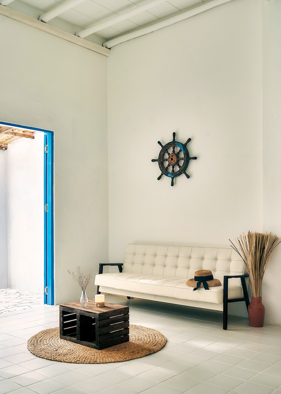Tại Seaside Nook, chúng tôi kết hợp các yếu tố địa phương với phong cách Địa Trung Hải và tinh thần tối giản (minimalist living). Màu trắng chủ đạo giúp không gian rộng rãi, gọn gàng, thông thoáng và thích nghi dễ dàng với khí hậu nóng ẩm. Những chất liệu tự nhiên như gạch bông, gỗ, mây tre không chỉ mang đến vẻ đẹp mộc mạc mà còn tạo cảm giác gần gũi, thư thái.