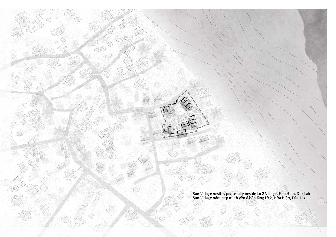 Sun Village tọa lạc tại Làng Lò – một ngôi làng chài nhỏ nằm phía Đông tỉnh Phú Yên xưa (nay thuộc địa phận Đắk Lắk). Nơi đây từng là cái nôi của nhiều làng nghề truyền thống như làm mắm, làm cá trụng, làm bánh tráng… Tuy nhiên, quá trình đô thị hóa đã khiến lớp trẻ dần rời quê lên thành phố, để lại những ngôi nhà cũ kỹ, những xóm nhỏ vắng người, và cả một vùng đất từng sầm uất trở nên hoang hóa, ngủ yên giữa biển trời đầy nắng gió.