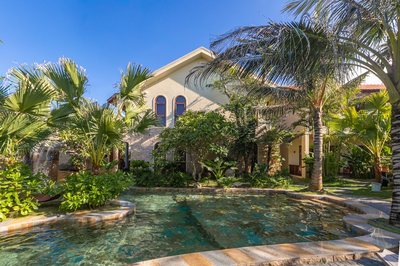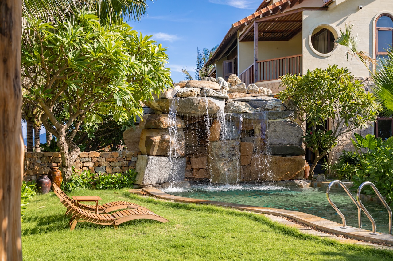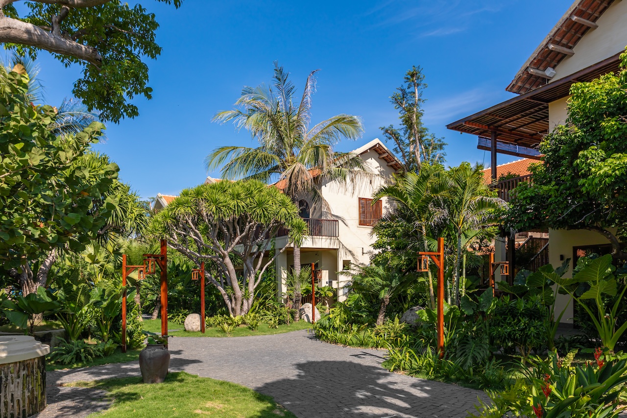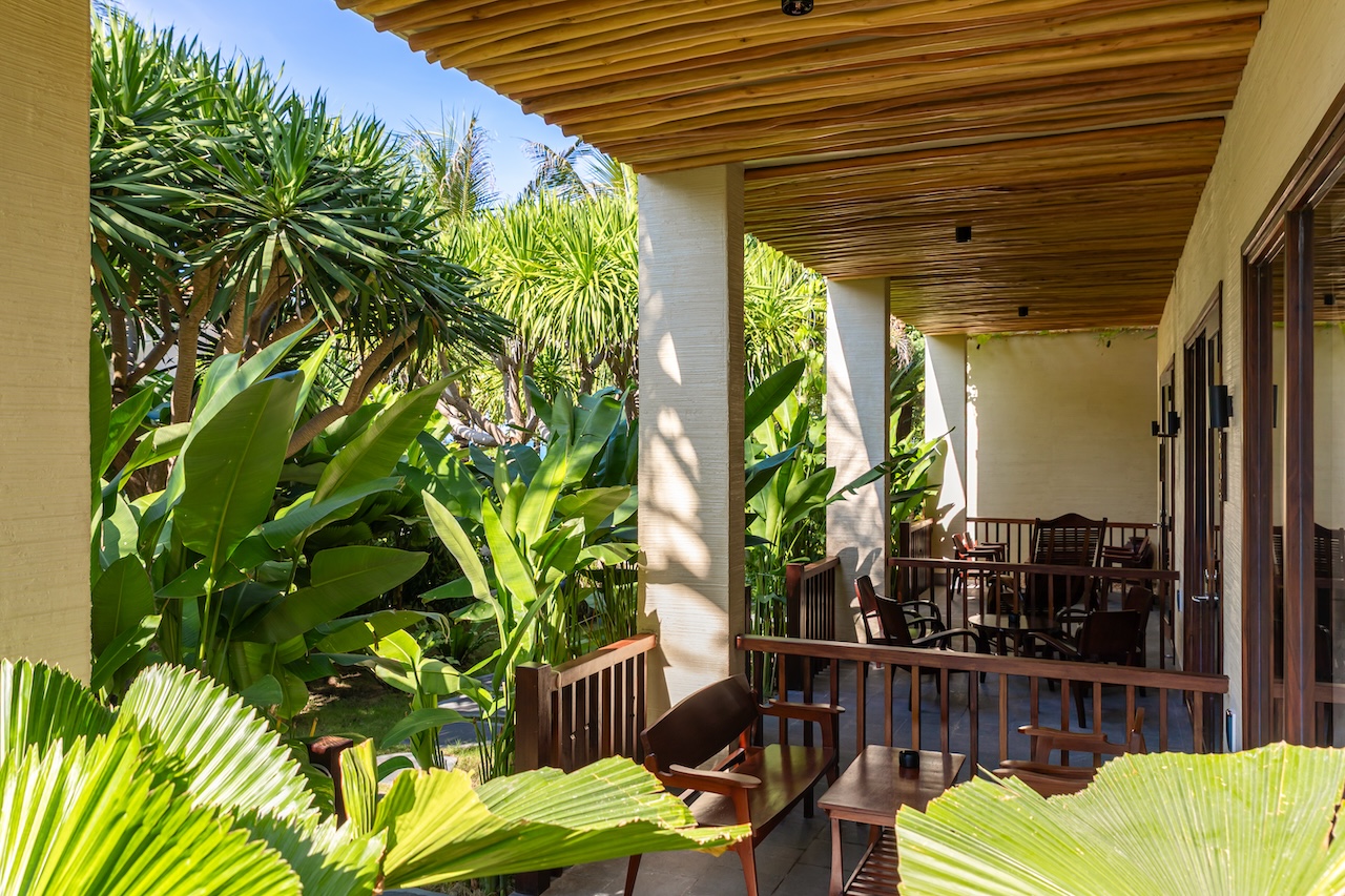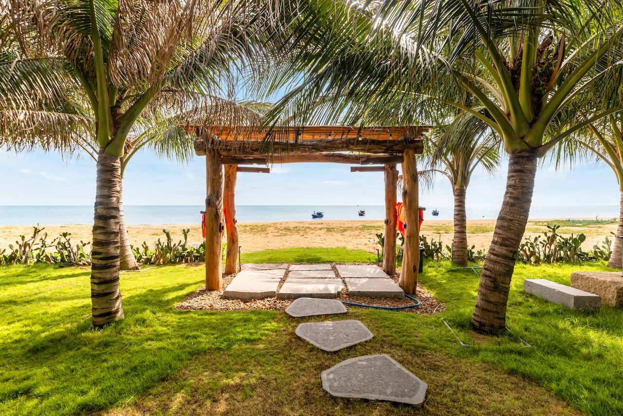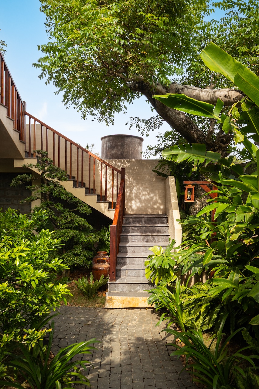 Từ vùng đất bỏ hoang, khu vườn được phủ xanh trở lại bằng các loài cây bản địa như dừa, nhãn rừng, bàng biển, duối, phát tài núi… tạo nên hệ sinh thái xanh gắn kết con người với thiên nhiên, đồng thời gợi lại ký ức thân thuộc của người con xa quê. Những hàng rào đá thấp được giữ nguyên như một biểu tượng của sự cởi mở, thân thiện và phóng khoáng của người dân miền biển.