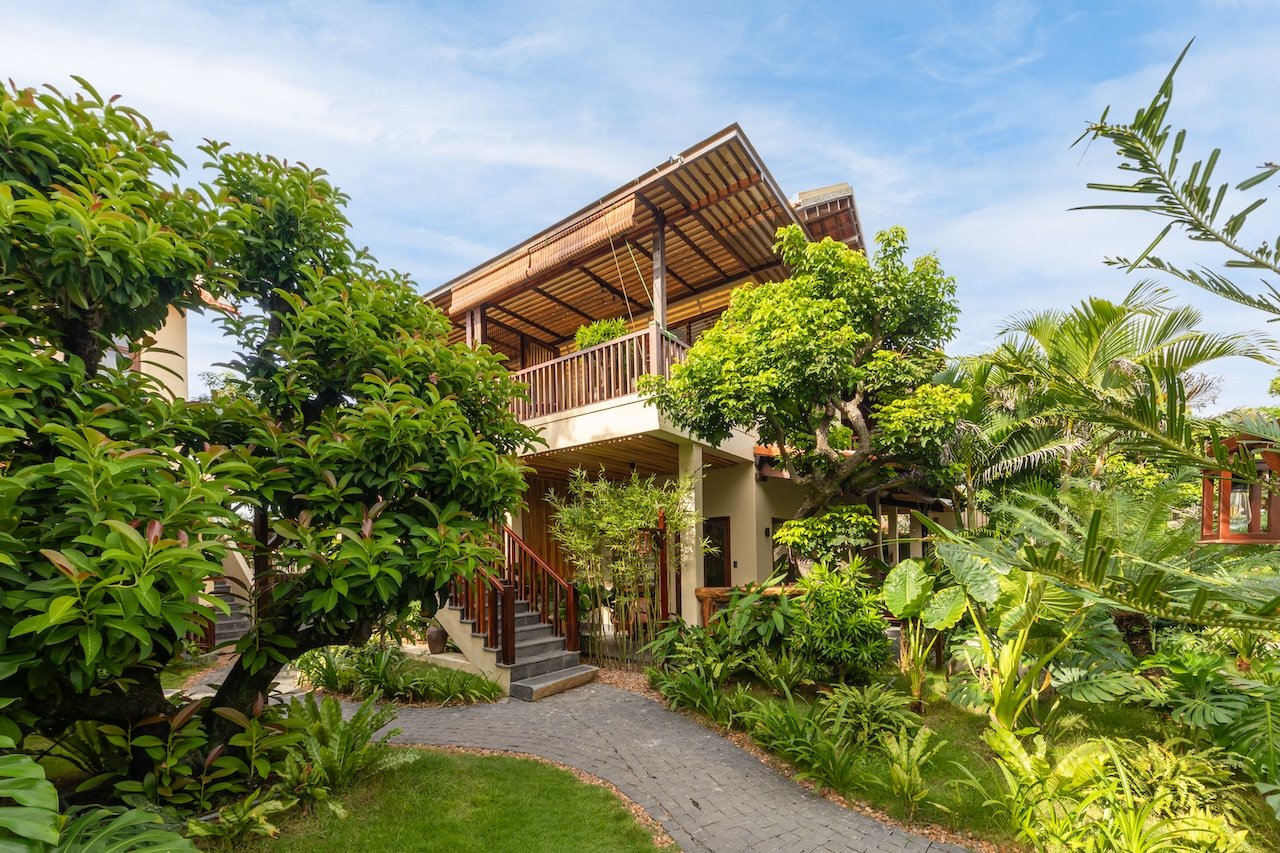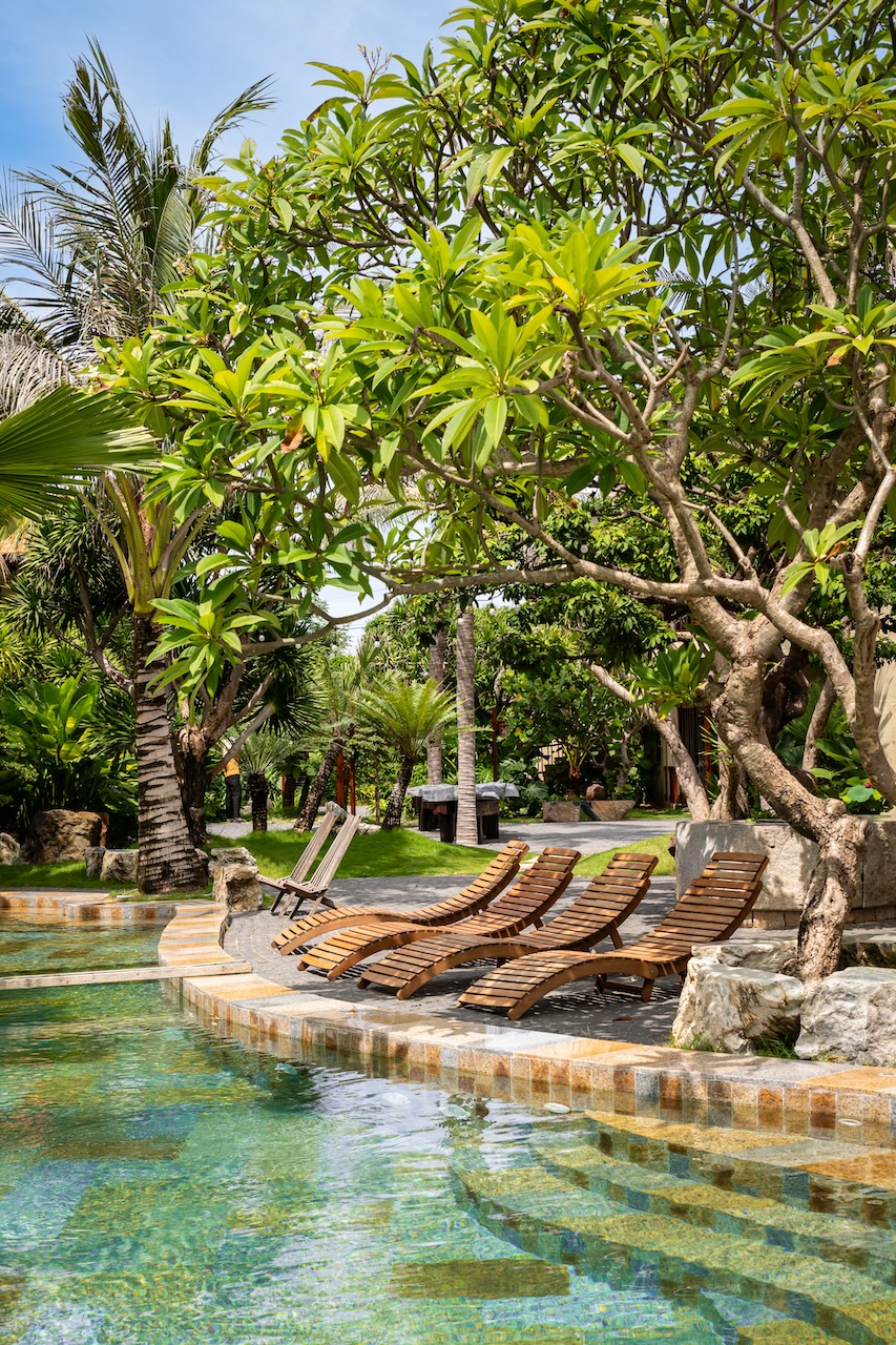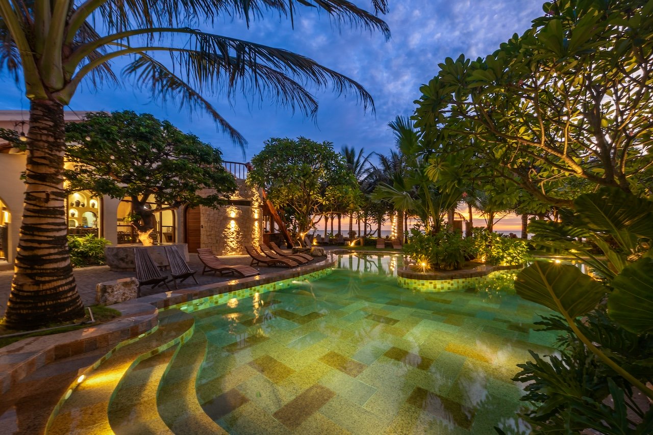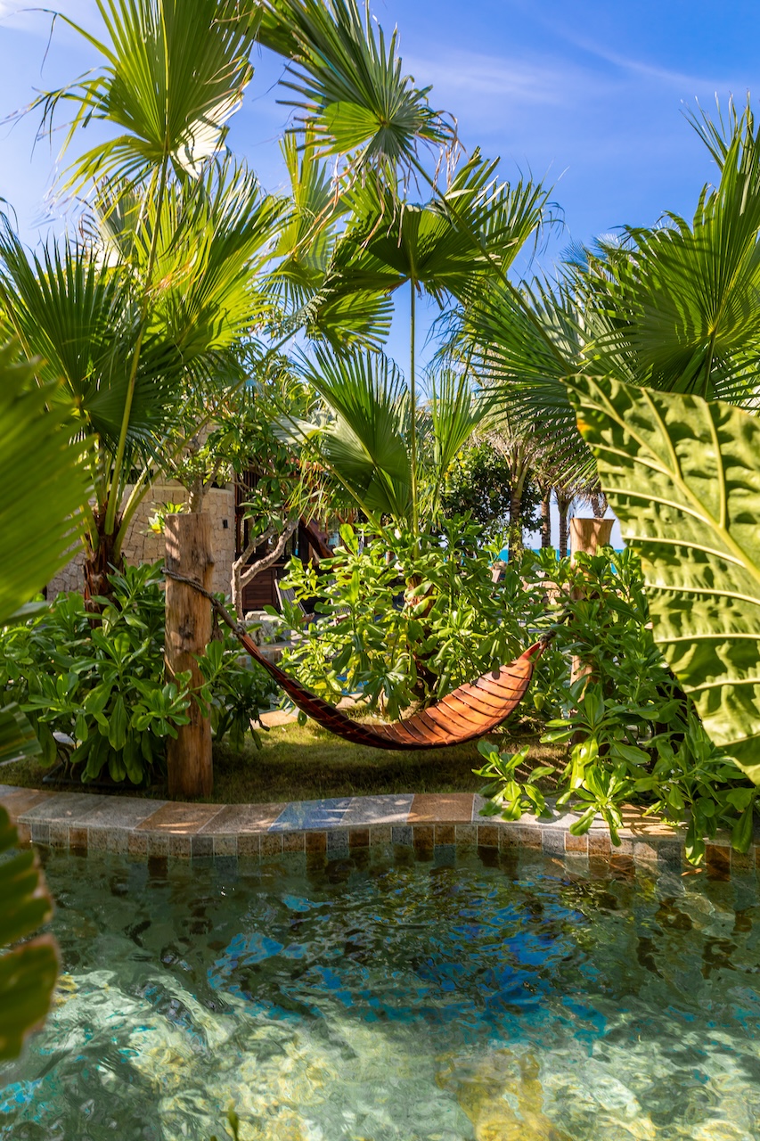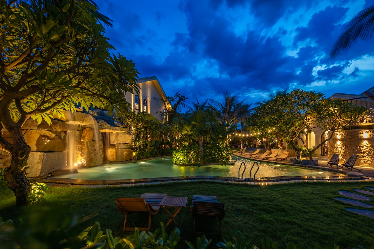 Từ vùng đất bỏ hoang, khu vườn được phủ xanh trở lại bằng các loài cây bản địa như dừa, nhãn rừng, bàng biển, duối, phát tài núi… tạo nên hệ sinh thái xanh gắn kết con người với thiên nhiên, đồng thời gợi lại ký ức thân thuộc của người con xa quê. Những hàng rào đá thấp được giữ nguyên như một biểu tượng của sự cởi mở, thân thiện và phóng khoáng của người dân miền biển.