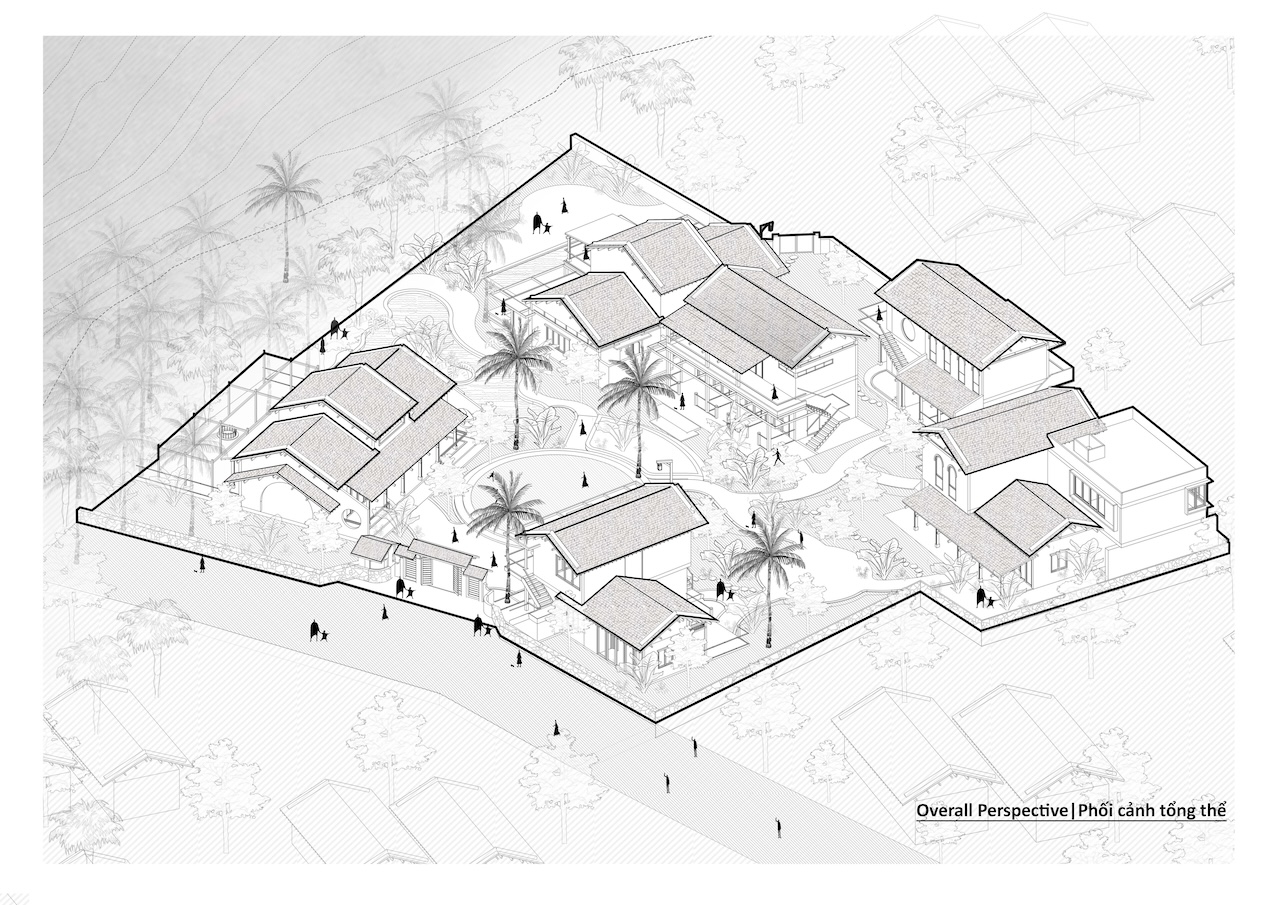 Công trình được xây dựng từ một cụm gồm sáu ngôi nhà cũ, được xây dựng trong giai đoạn 1939–1969 của thế kỷ trước, được kết nối với nhau bằng một vòng tròn tượng trưng cho sự tái sinh. Dù đã xuống cấp theo thời gian, nhưng trong từng mảng tường, mái ngói, khung cửa vẫn còn phảng phất linh hồn của làng quê Việt Nam xưa. Chính từ “thể xác” và “linh hồn” ấy, hành trình hồi sinh Sun Village được bắt đầu — không nhằm xóa bỏ, mà để kể tiếp câu chuyện của một ngôi làng, trong một hình hài mới đầy sức sống.
