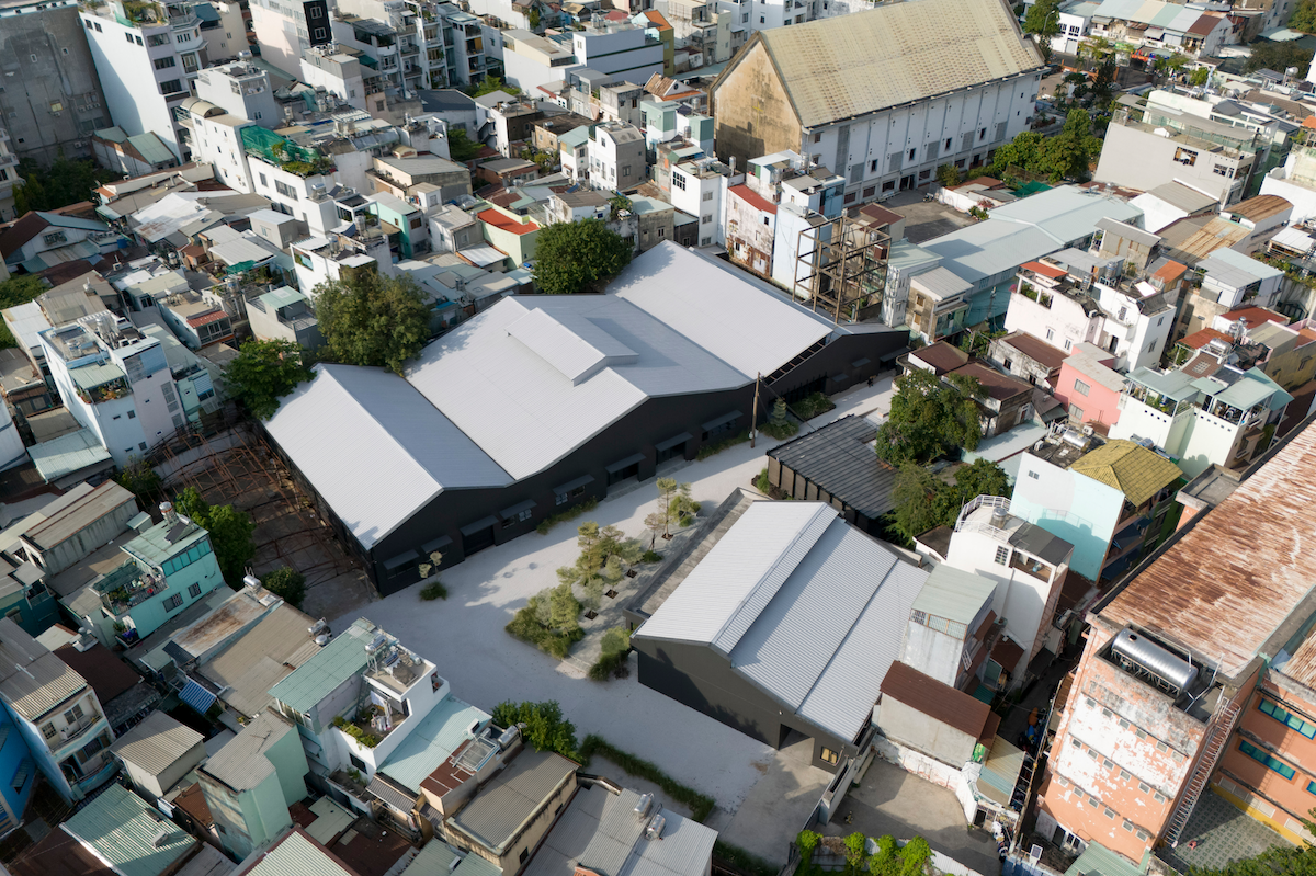 Ẩn mình trong một con hẻm nhỏ giữa trung tâm Sài Gòn, TDX Ice Factory là dự án tái sử dụng thích ứng do NU Architecture & Design thực hiện, chuyển đổi nhà máy nước đá cũ rộng hơn 4.200 m² thành tổ hợp showroom, văn phòng và không gian sự kiện cho District Eight. Ý tưởng thiết kế tập trung vào việc gìn giữ ký ức công nghiệp và bản sắc thương hiệu, đồng thời khai thác ngôn ngữ kiến trúc đương đại. Phần lớn kết cấu bê tông hiện trạng được giữ lại, kết hợp với tre, vải bố và gỗ cũ, mang đến cảm giác chân thực và bền vững. Lấy cảm hứng từ sân trong truyền thống Việt Nam, khu sự kiện ngoài trời có bố cục mở, ranh giới linh hoạt, thông gió tự nhiên, tạo môi trường dễ chịu quanh năm và khuyến khích kết nối cộng đồng.