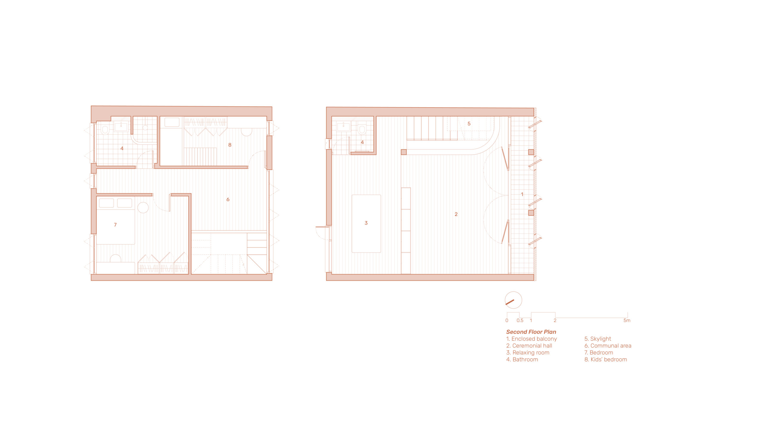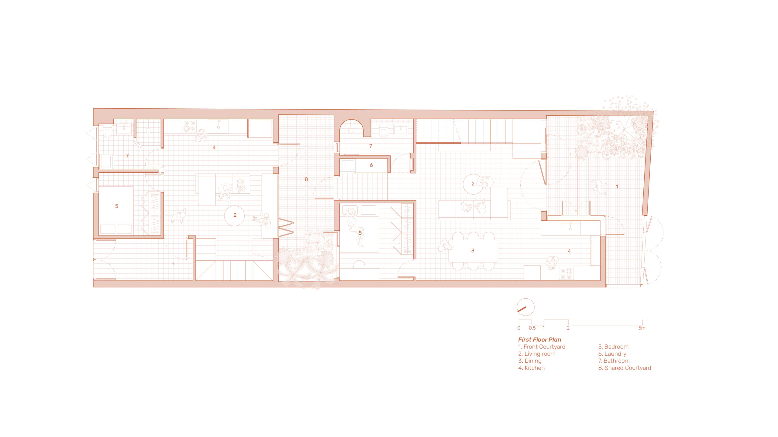Khoảng sân trong – được tổ chức tối giản nhưng giàu cảm xúc – trở thành trái tim của ngôi nhà, nơi hai hộ gia đình gặp gỡ, nơi thời gian được cảm nhận qua sự thay đổi của ánh sáng, gió và cây cối. Terracotta Breath cho thấy cách mà những vật liệu khiêm nhường, tay nghề địa phương và tư duy thiết kế chánh niệm có thể tạo nên một kiến trúc tinh tế, lặng lẽ nhưng bền vững, nâng đỡ đời sống thường nhật.