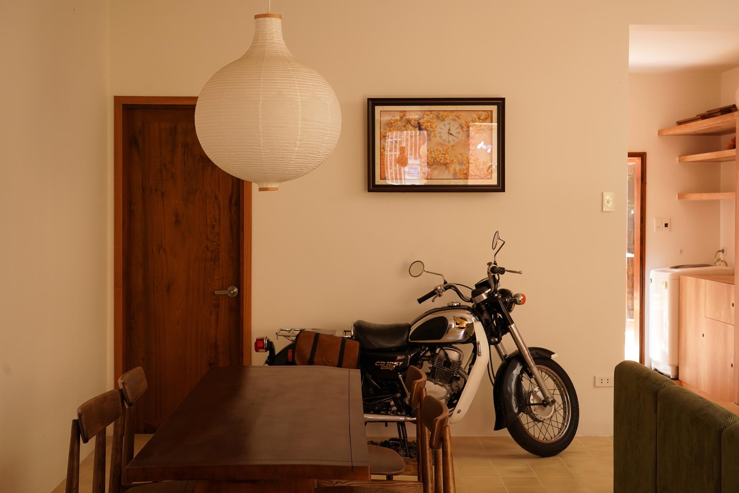 Ở phía sau khu đất, ngôi nhà của con gái thể hiện một cách tiếp cận khác: gọn gàng, linh hoạt và hướng tới tương lai. Được thiết kế cho một gia đình trẻ, không gian được tổ chức theo mặt bằng mở, nơi mỗi mét vuông đều có thể thích ứng với những thay đổi của đời sống. Những cánh cửa gấp lớn mở ra sân chung, xóa mờ ranh giới giữa trong và ngoài, để ánh sáng, gió và mảng xanh trở thành một phần của không gian nội thất.