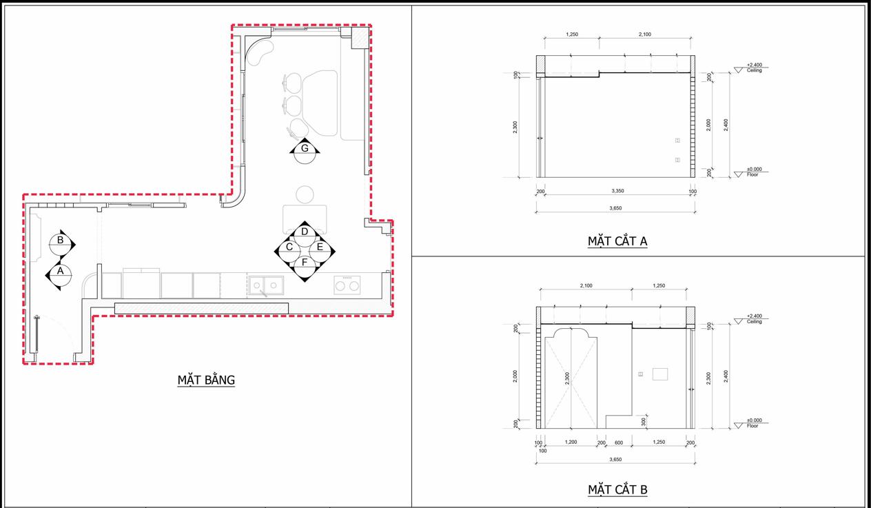 Trước cải tạo, khu bếp bị bó hẹp và tách biệt như một trang sách bị gập kín. Việc tháo bỏ bức tường ngăn không chỉ nhằm mở rộng không gian, mà giống như mở bung một nếp gấp cũ, để ánh sáng, chuyển động và sinh hoạt gia đình chảy xuyên suốt. Tông gỗ ấm, sắc vàng dịu của hệ tủ và mảng tường kem tạo nên cảm giác thân thuộc, biến bếp và bàn ăn thành nơi những ký ức đời thường được viết tiếp qua từng bữa cơm sum vầy.