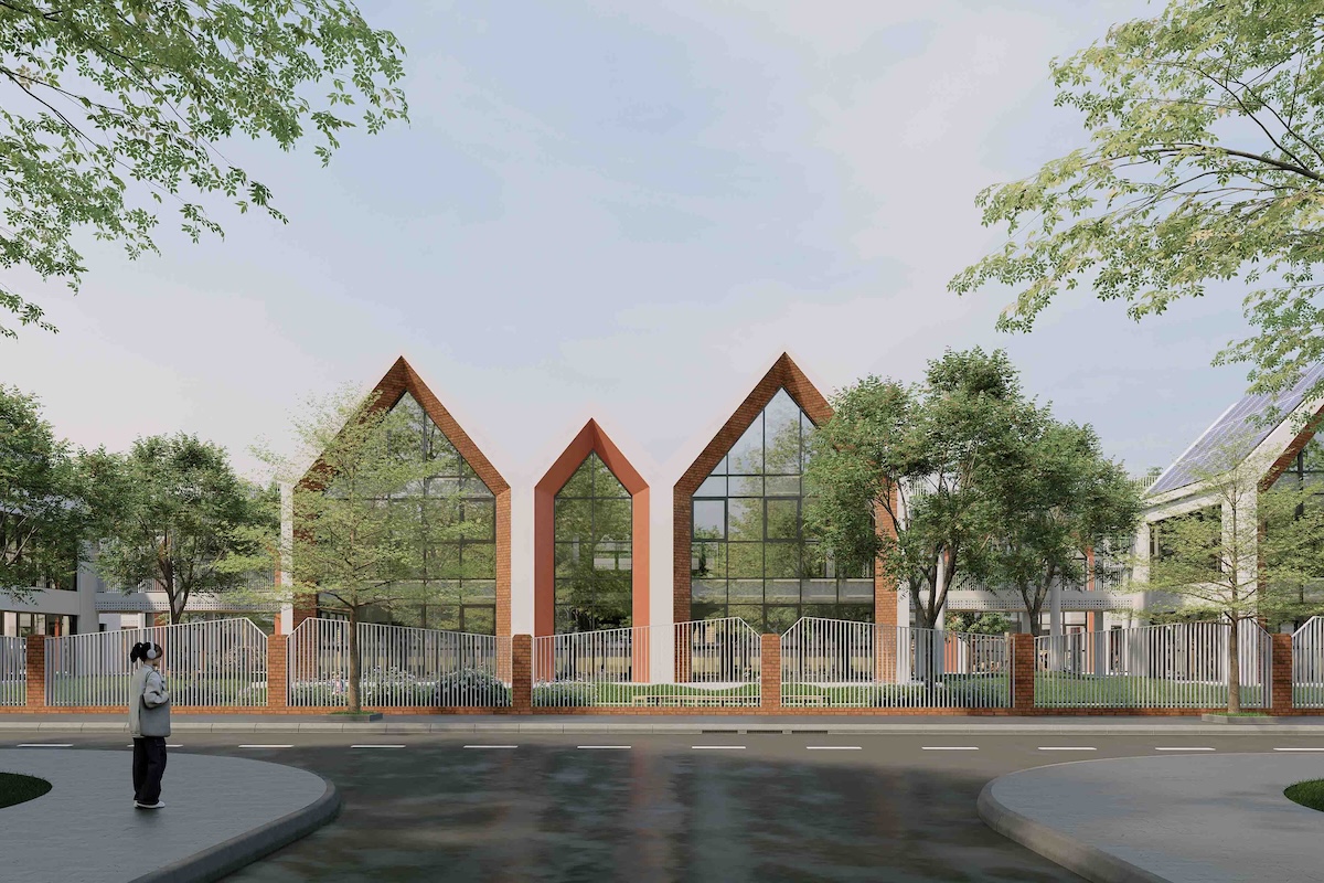 Ngôn ngữ kiến trúc của công trình là sự kết hợp các khối hiện đại, lấy cảm hứng từ hình thái bungalow của các khu resort, với quy mô thấp tầng, mái dốc và không gian mở, tạo cảm giác gần gũi thiên nhiên, thư thái và thân thiện, đồng thời vẫn đảm bảo tính hiện đại và quốc tế cho môi trường giáo dục. Vật liệu truyền thống như gạch đỏ, gỗ, tạo sự cân bằng giữa tinh thần quốc tế và địa phương. Không gian mở và cửa kính lớn giúp đón sáng, thông gió tự nhiên và tăng kết nối trong & ngoài. Mảng xanh được bố trí xuyên suốt từ sân vườn, hành lang đến các tầng, tạo môi trường học tập trong lành.
