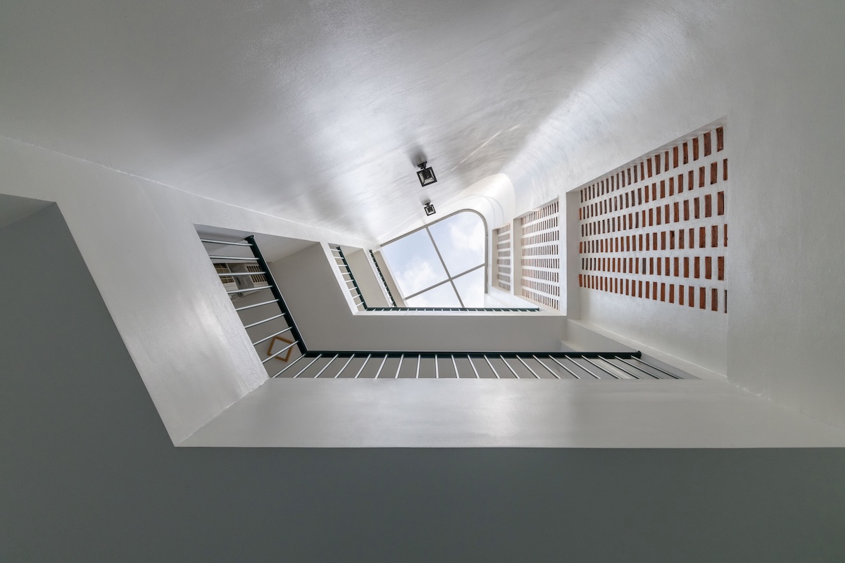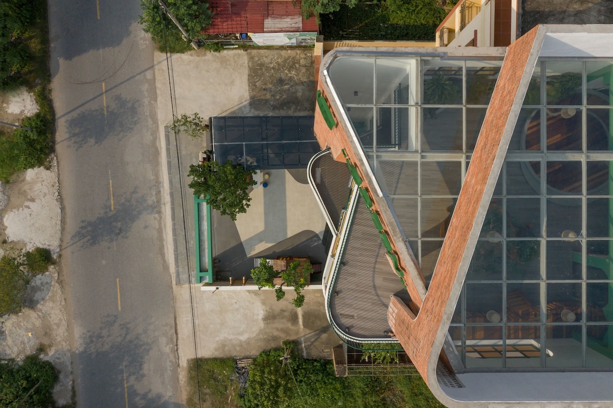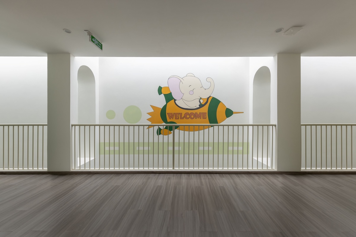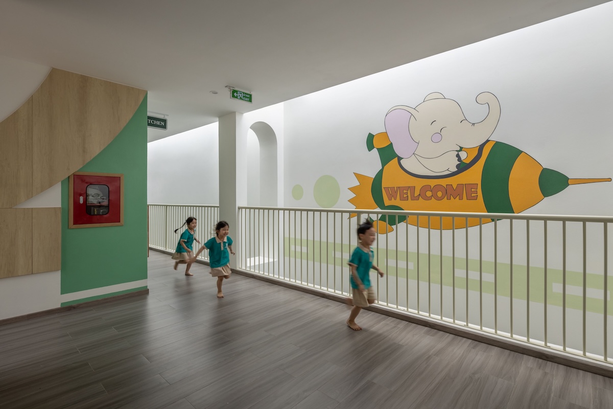 Cấu trúc công trình với các đường cong mềm mại và những khoảng hở chiến lược (như tường gạch lỗ/breeze blocks) cho phép ánh sáng tự nhiên và gió trời len lỏi vào từng ngóc ngách. Điều này không chỉ giúp tiết kiệm năng lượng điện năng mà còn tạo ra môi trường vi khí hậu tươi mới, đảm bảo sức khỏe thể chất tốt nhất cho trẻ nhỏ.