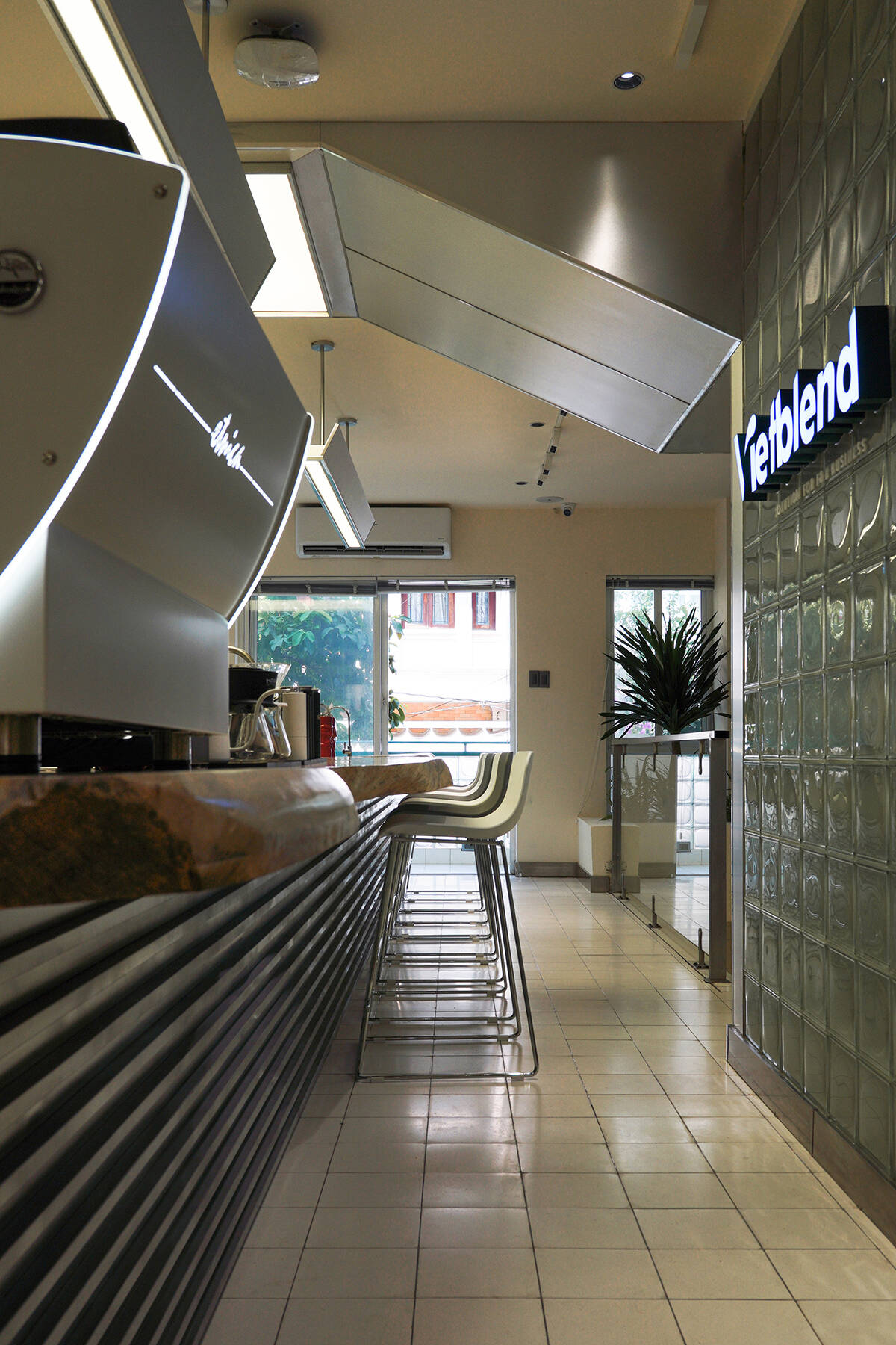 Vietblend Training Center được triển khai trên nền một ngôi nhà phố với lối kiến trúc chỉ đáp ứng cho nhu cầu ở và sinh hoạt gia đình. vốn tối, kín và chịu ảnh hưởng bức xạ nhiệt lớn từ hướng Tây. Hiện trạng dự án nằm ở hướng Tây, không gian luôn trong trạng thái đóng kín để giảm thiểu lượng nhiệt tối đa tác động vào khách hàng bên trong, do đó bóng tối luôn len lỏi khắp nơi trong không gian. Điểm khó khăn khác là không được can thiệp vào mặt đứng của công trình, từ đó giải pháp duy nhất là cải thiện chất lượng không gian nội thất bên trong.