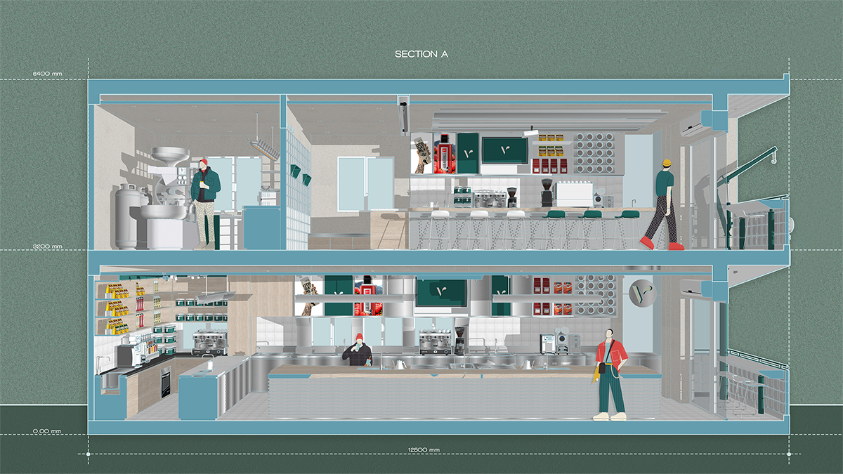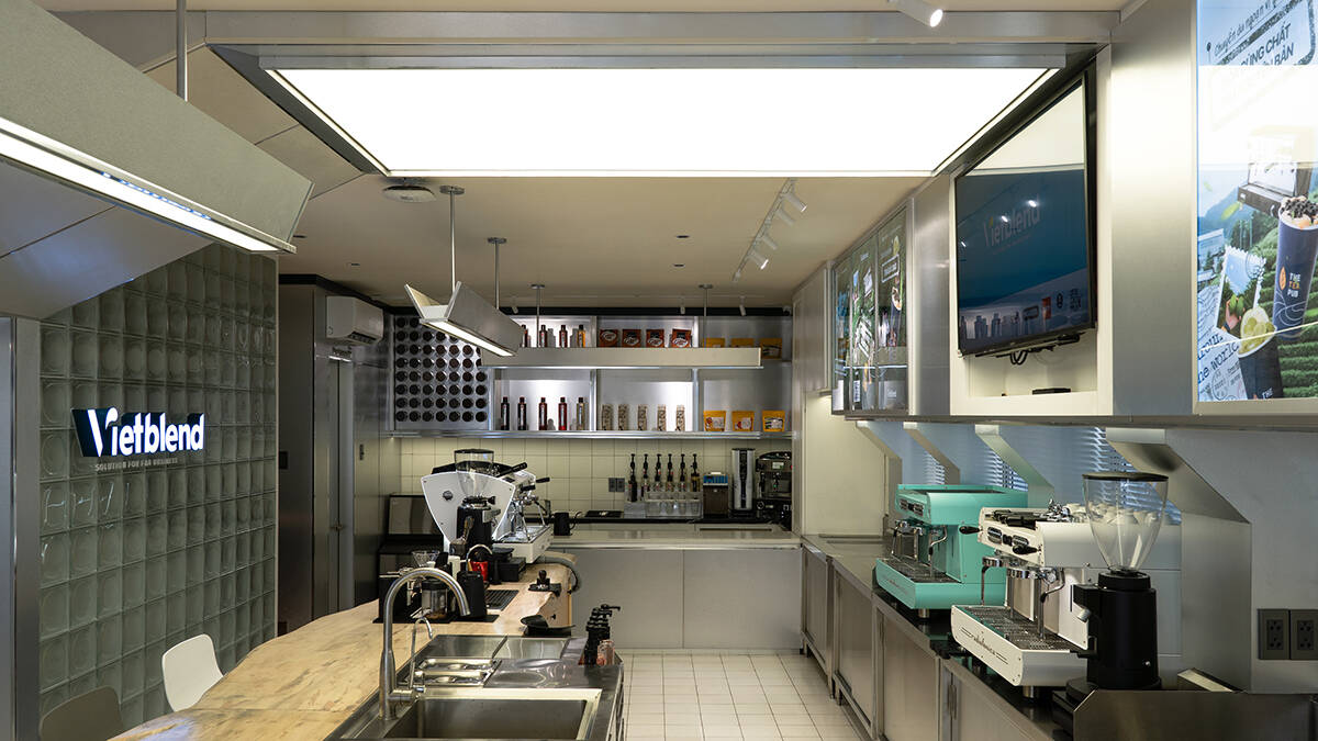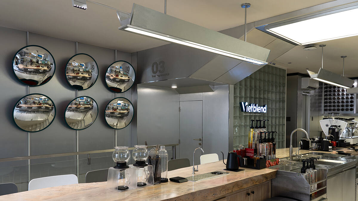 Công năng bao gồm khu vực đào tạo, phòng rang cà phê, khu vực trưng bày sản phẩm và thưởng lãm. Vì là một không gian giảng dạy về pha chế, đặc thù về những điểm nhấn bên trong nằm ở các dòng sản phẩm chủ lực của Vietblend như trà và cà phê. Tổng quan mô hình mang lại cảm xúc gần gũi, cởi mở và kết nối liền mạch giữa giảng viên với các học viên.