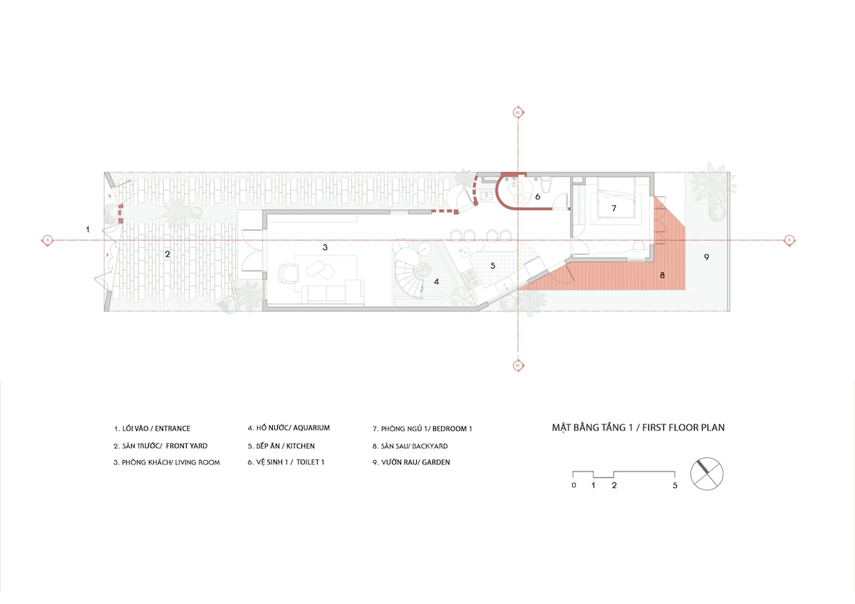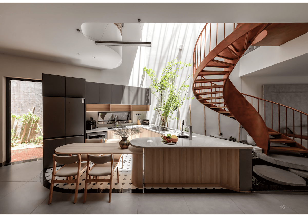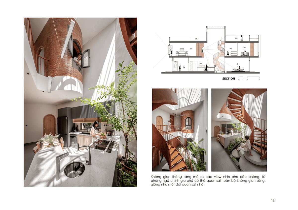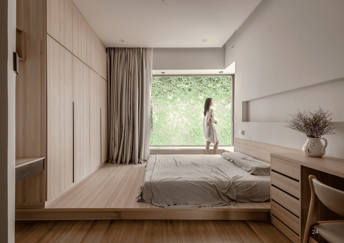 Lấy khu bếp làm trái tim của ngôi nhà – nơi cây xanh, bầu trời và con người giao hòa – mọi thành viên đều có thể dễ dàng kết nối với nhau. Từ phòng ngủ chính, gia chủ có thể bao quát toàn bộ không gian sống tựa như một đài quan sát nhỏ.